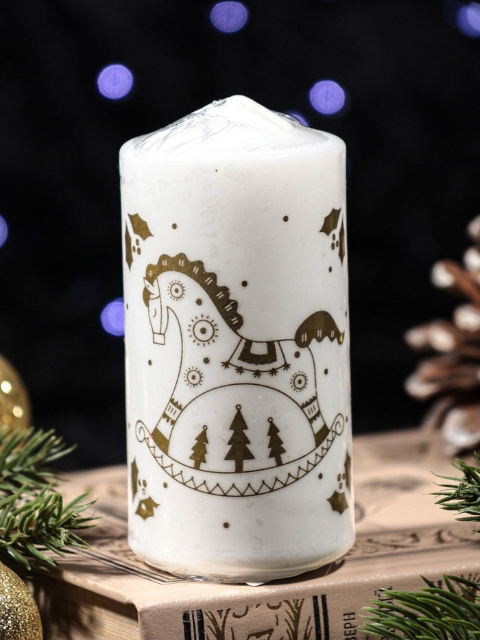 Свеча-цилиндр с накаткой «Лошадка-качалка»
