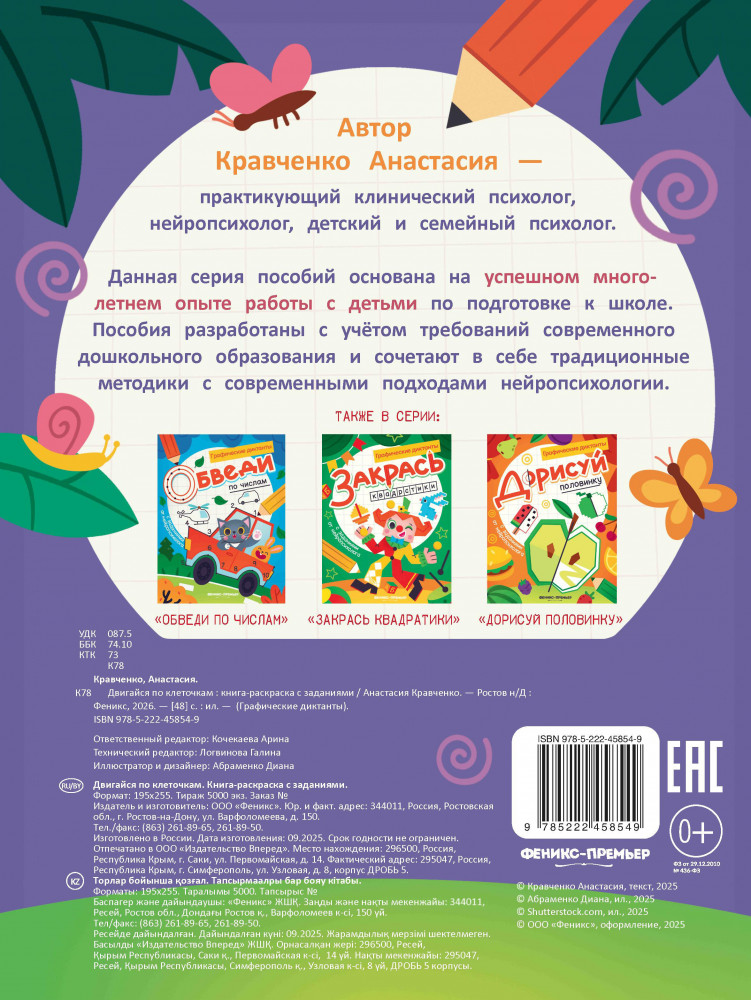 Серия: Графические диктанты Данная серия пособий основана на успешном многолетнем опыте работы с детьми по подготовке к школе. Пособия разработаны с учётом требований современного дошкольного образования и сочетают в себе традиционные методики с современными подходами нейропсихологии. |