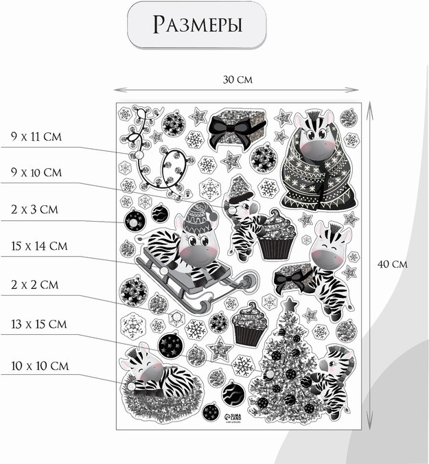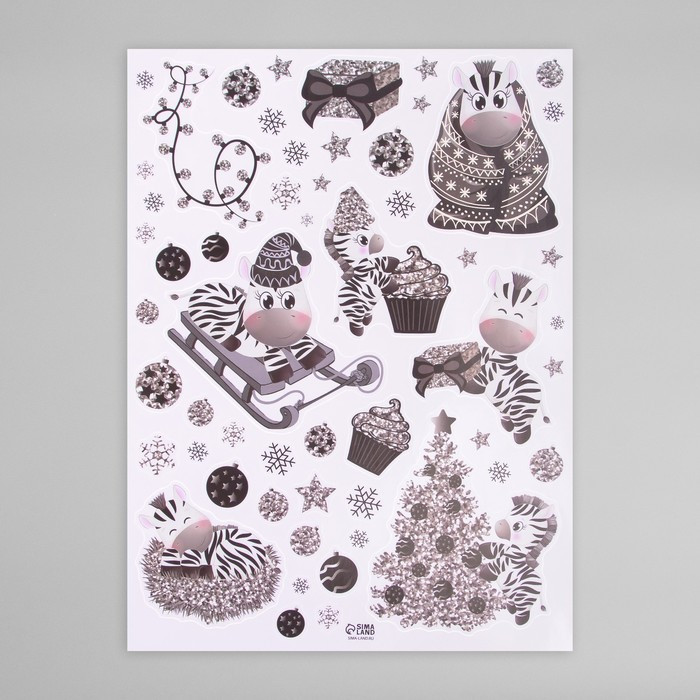 Арт Узор Набор наклеек «Зебра и серебристые снежинки»новинка -35%