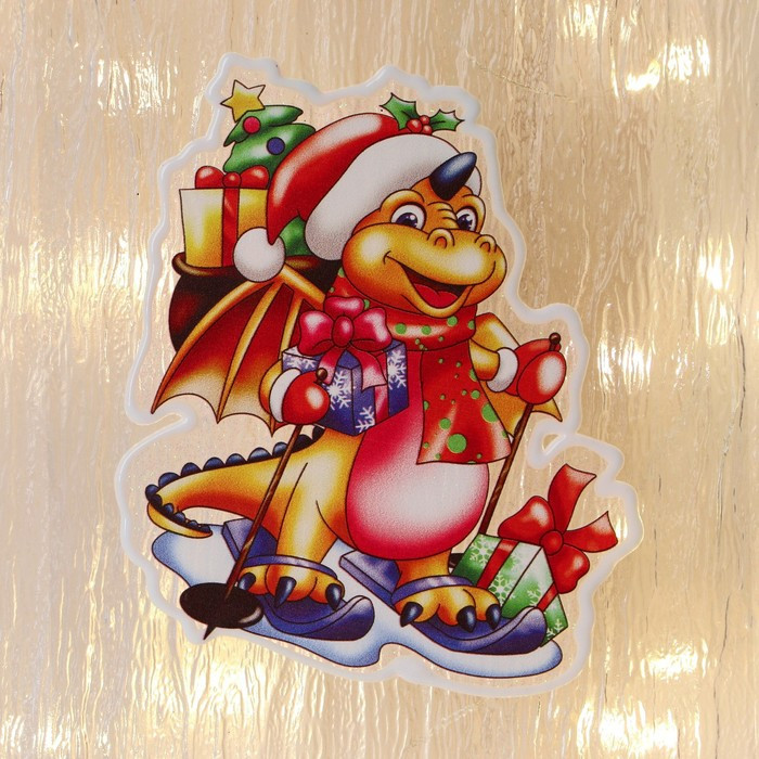 Зимнее волшебство Наклейка «Дракоша в колпаке с подарками»новинка -35%
