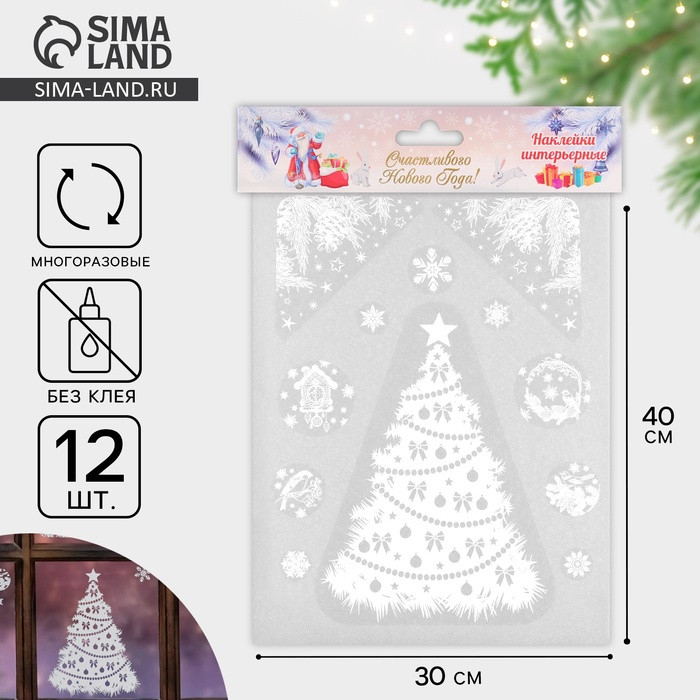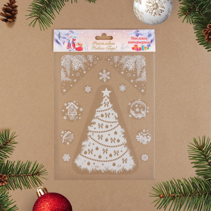 Дарим Красиво Набор наклеек новогодних «Ёлка белая»новинка -35%