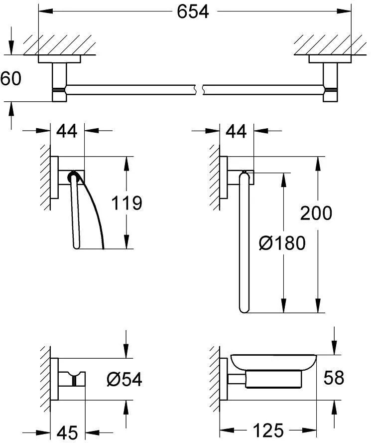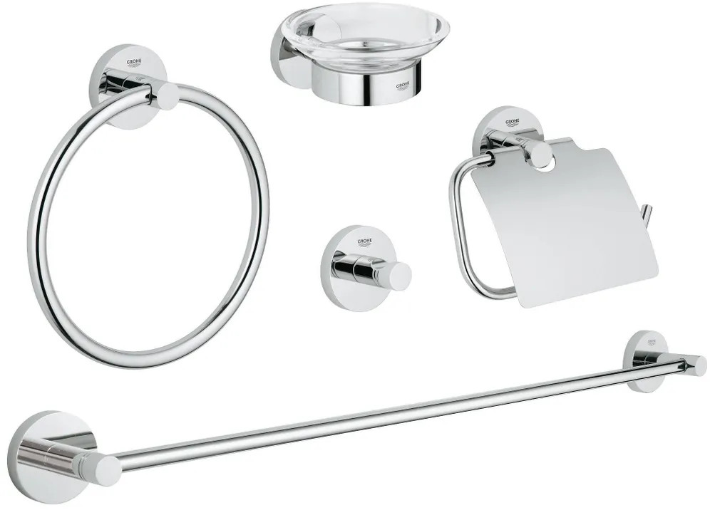 Grohe Набор аксессуаров для ванной комнатыновинка В данный момент этот товар отсутствует в продаже. Возможно, у нас найдется аналогичный или похожий товар здесь. Серия: Essentials Мгновенное удобство! Для завершения великолепного дизайна ванной комнаты остается лишь выбрать набор аксессуаров GROHE Essentials. Спроектированный в Германии, этот набор 5 в 1 включает в себя кольцо для полотенца, держатель для полотенца (600 мм), крючок для халата, держатель туалетной бумаги и держатель с дозатором жидкого мыла — все компоненты, которые понадобятся вам для комфорта в ванной комнате. Каждое изделие выполнено в надежном хромовом покрытии GROHE StarLight, которое сохранит свой блеск на долгие годы. Каждый элемент также очень просто установить благодаря пошаговым инструкциям. |