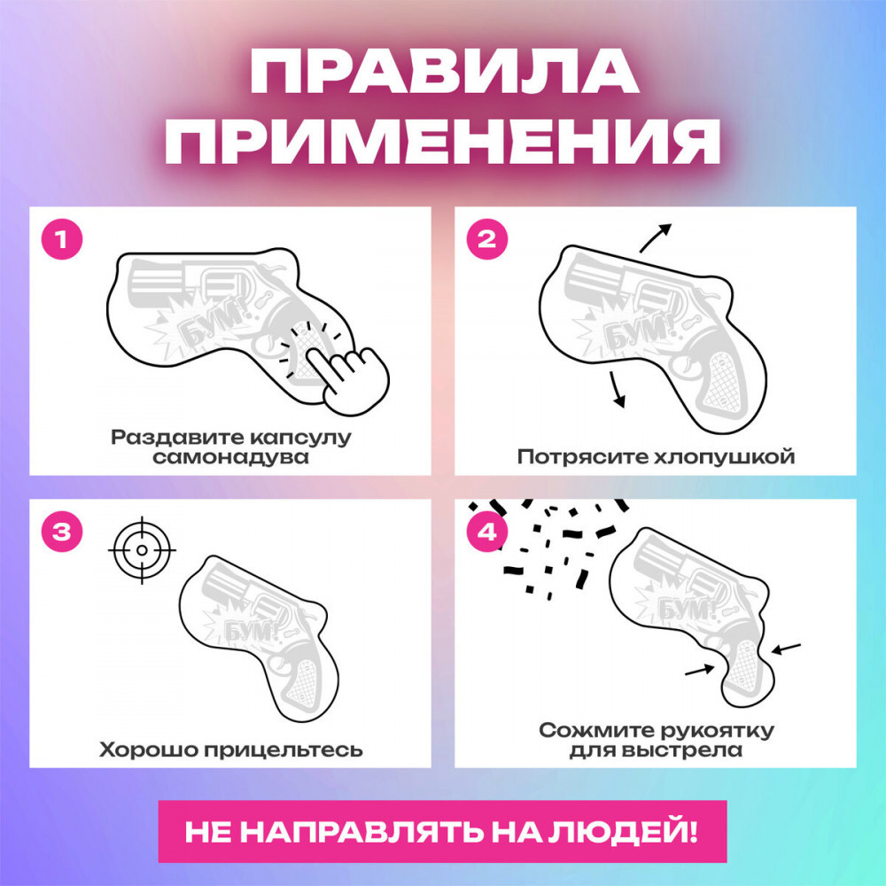 Добавьте ярких эмоций и незабываемых моментов вашему празднику с самонадувной хлопушкой Золотая сказка! Изделие представляет собой хлопушку в виде пистолета. Материал — 100% полипропилен. Размер — 14×21.5 см. |