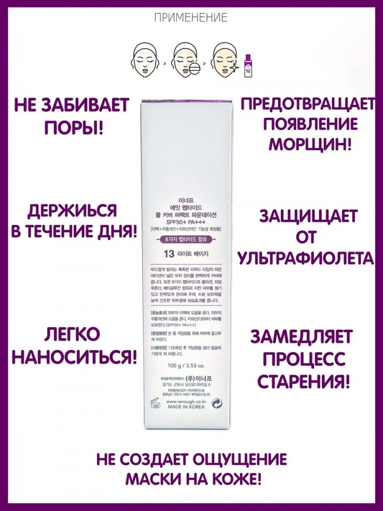 Тональный крем для лица «8 Peptide Full Cover Perfect» SPF50+ PA++++, оттенок 13