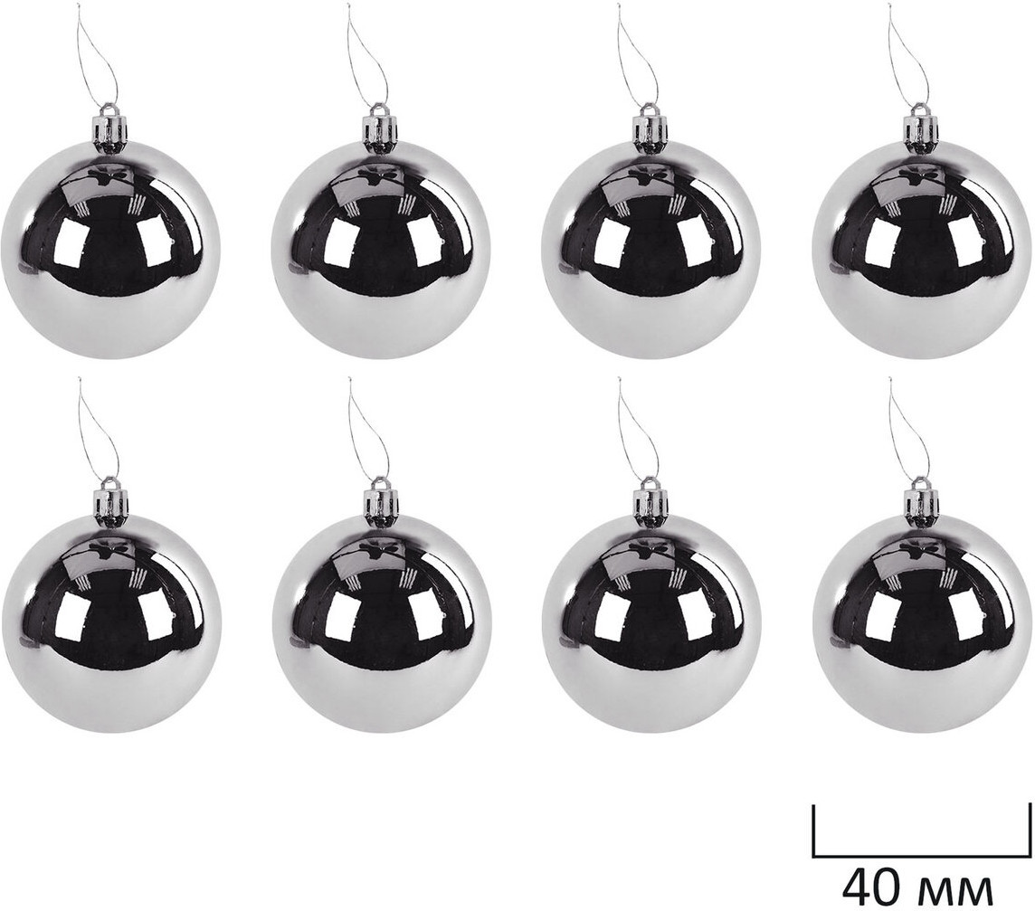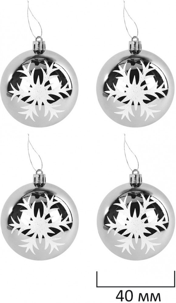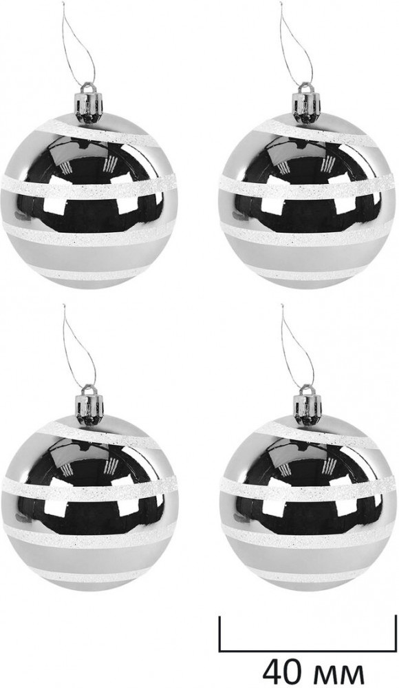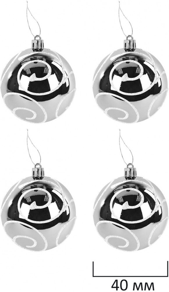 • 4 шара серебристого цвета с глянцевым эффектом (диаметром 4 см);