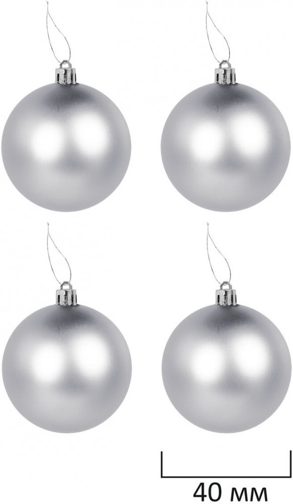 • 4 шара серебристого цвета с матовым эффектом (диаметром 4 см);