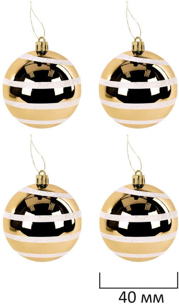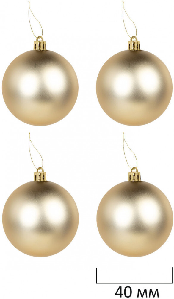 • 4 шара золотистого цвета с матовым эффектом (диаметром 4 см);