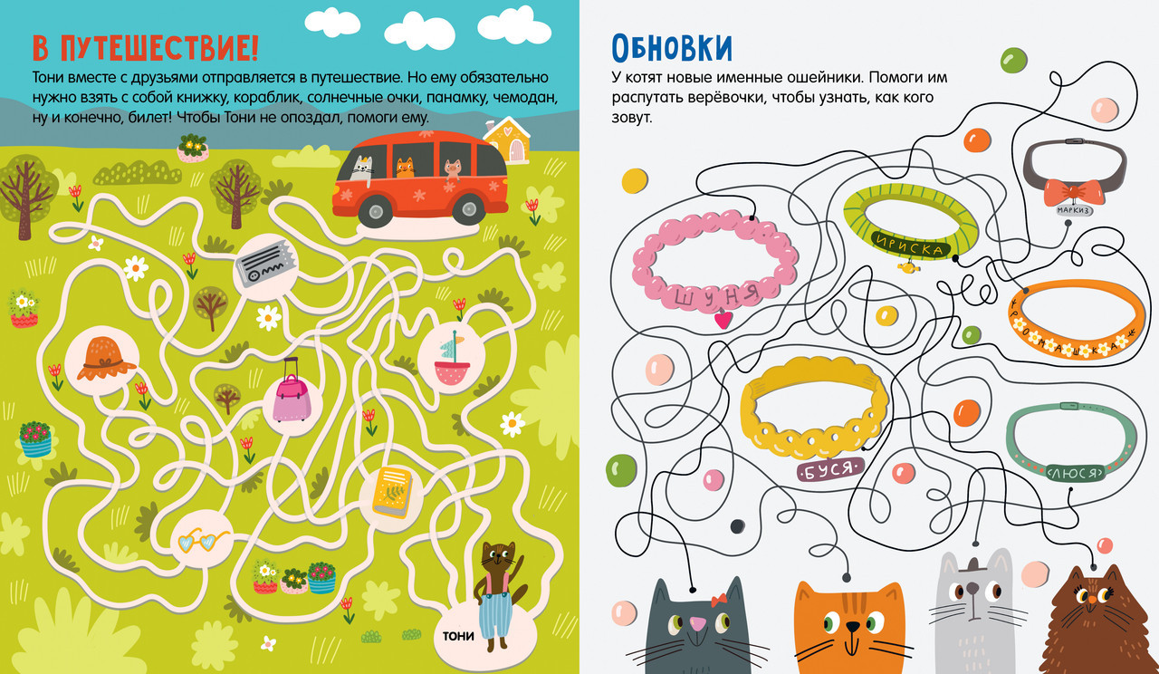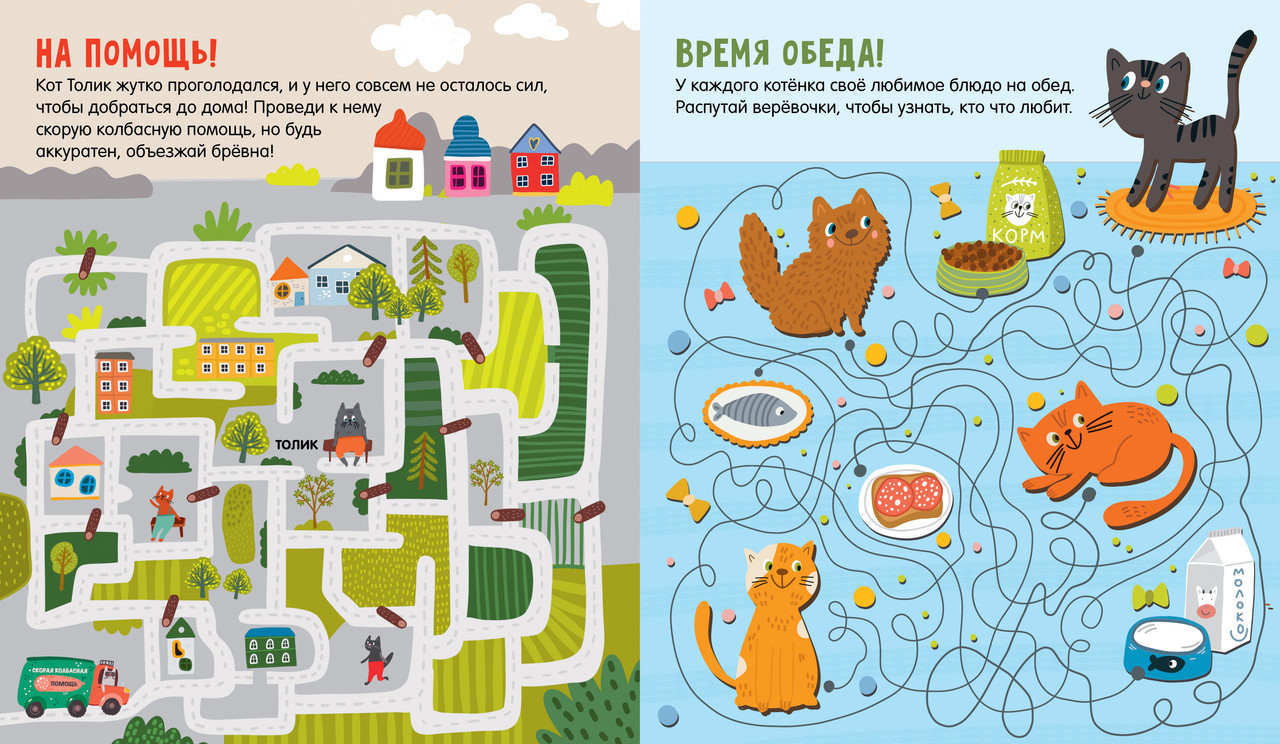 «Котолабиринты» — это книжка с увлекательными заданиями, которая развлечет малыша и дома, и в поездке, и в гостях. 26 красочных лабиринтов не оставят равнодушным вашего непоседу и займут его надолго. Добро пожаловать в страну пушистых котиков. Эти озорные существа знают толк в развлечениях и играх. Но им точно потребуется ваша помощь, чтобы пройти все запутанные дорожки и добраться до цели. Хватайте фломастеры, карандаши и скорей на помощь котикам! Игры с книгой — это увлекательный способ развить память, логику и подготовить руку к письму. А мягкая обложка, много заданий — идеальный формат для поездок с детьми. |