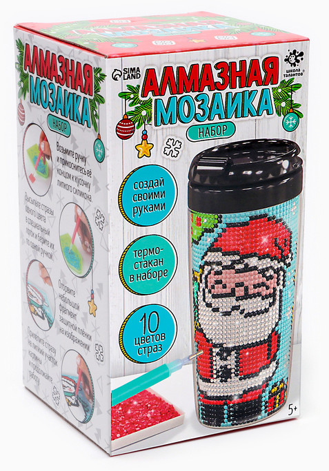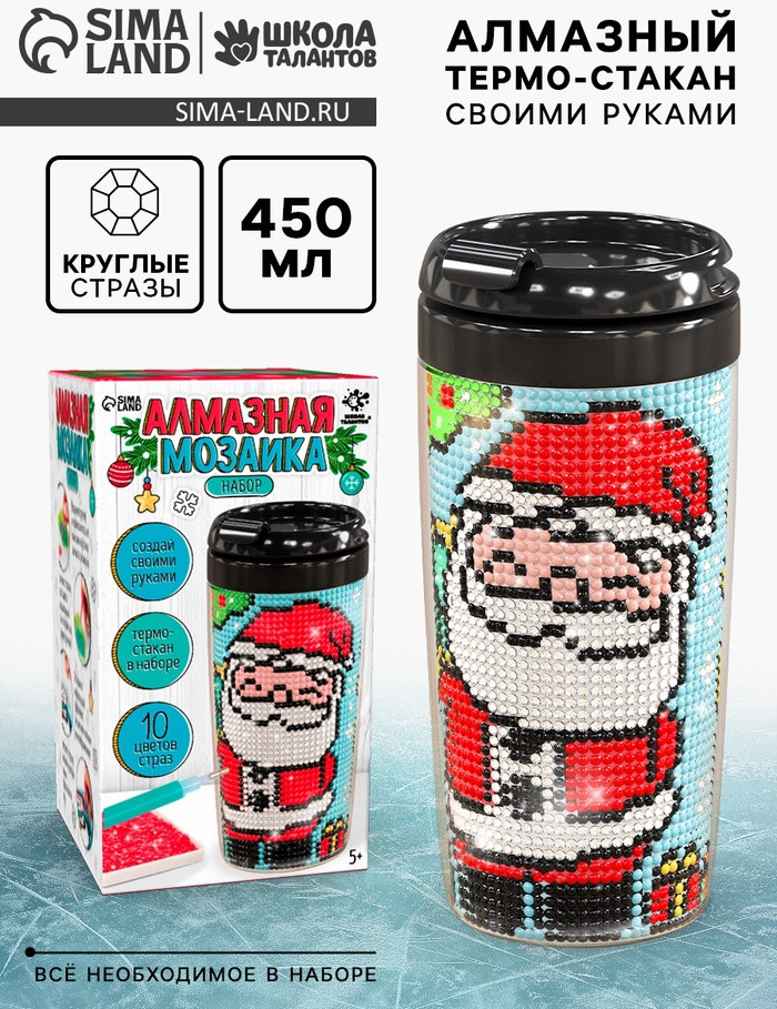 Алмазная мозаика «Дед Мороз» — это увлекательное занятие для взрослых и детей. Создайте свою уникальную картину на Новый год, украшая термостакан сверкающими стразами. Это не просто хобби, а настоящий арт-терапевтический процесс, который поможет расслабиться и отвлечься от повседневной суеты. Создание картин из страз развивает творческие способности, при этом стимулируя воображение и креативность. Готовый термостакан станет необычным и оригинальным презентом для себя или близких. Объём термостакана — 450 см. Двойные стенки, которые сохраняют температуру напитка долгое время. Герметичная крышка, предотвращающая проливание. Рекомендовано для детей старше 5 лет. |