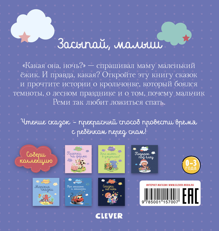 Откройте волшебную книгу сказок «Засыпай, малыш» и прочтите истории о крольчонке, который боялся темноты, о лесном празднике и о том, почему мальчик Реми так любит ложиться спать. «Какая она, ночь?» — спрашивал маму маленький ежик. И правда, какая? Трогательные истории из сборника подарят детям и родителям незабываемые минуты радости и тепла. Ведь это время вы проведете вместе, с максимальной пользой и удовольствием. Расскажите малышу перед сном про смелых зверюшек, и вы увидите, как эти добрые и увлекательные истории расслабят кроху и подарят ему самые приятные сновидения.