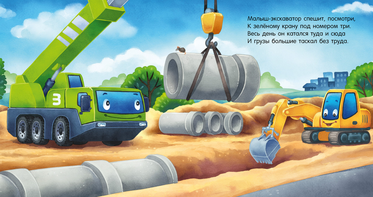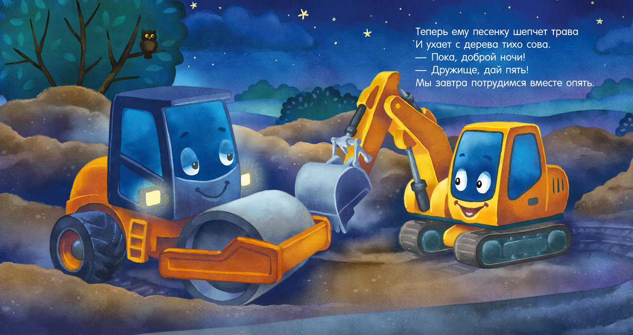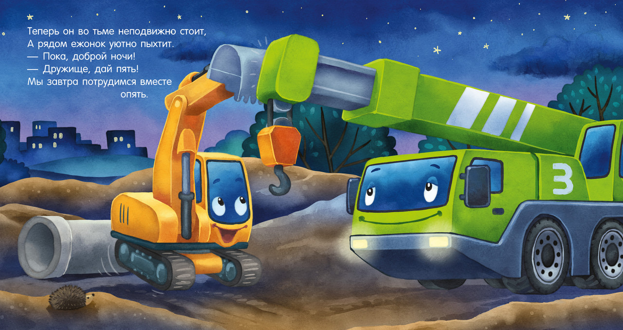 Бестселлер от издательство Clever для малышей 2, 3, 4, 5 лет понравится любителям таких «сонных» сказок, как «Спокойной ночи, ферма!», «Спокойной ночи, трактор!». Добрые детские стихотворения, красивые картинки, приключения машинок — детскую художественную литературу о милом герое экскаваторе можно читать перед сном как дома, так и в детском саду. Простые стихи и крупный шрифт подойдут и ребятам постарше для первого самостоятельного чтения.