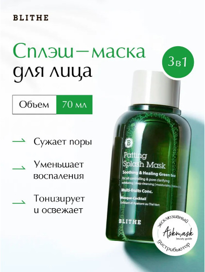 Blithe Сплэш-маска с зеленым чаем для проблемной и чувствительной кожи «Green Tea Splash Mask»