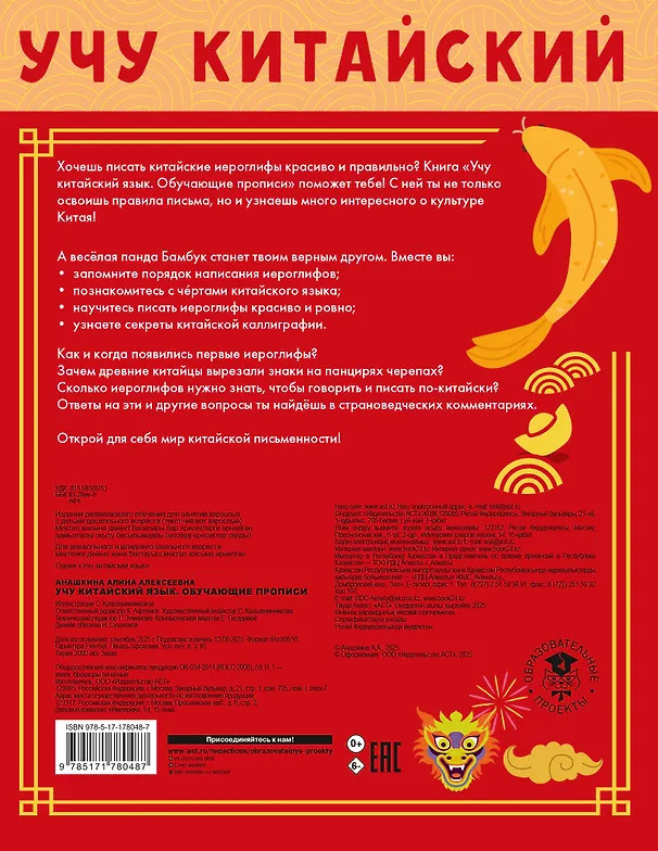Серия: Образовательные проекты Хочешь писать китайские иероглифы красиво и правильно? Книга «Учу китайский язык. Обучающие прописи» поможет тебе! С ней ты не только освоишь правила письма, но и узнаешь много интересного о культуре Китая! А весёлая панда Бамбук станет твоим верным другом. |