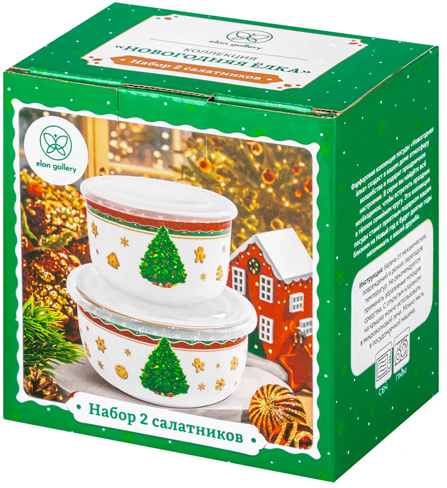 Elan Gallery Набор салатников с крышками «Новогодняя елка»