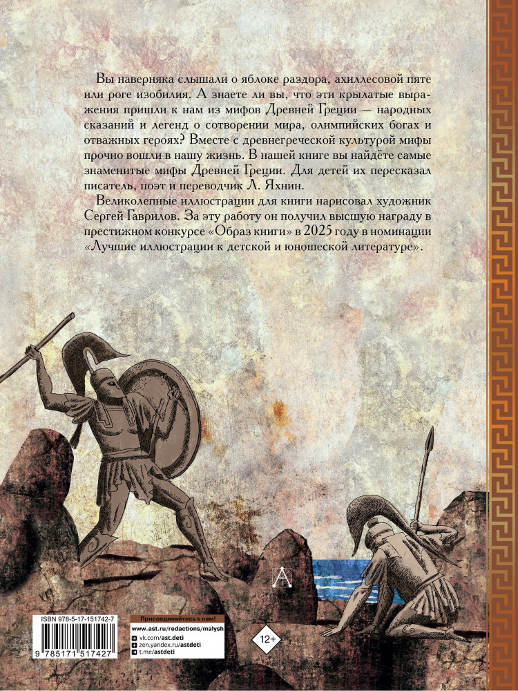 Серия: Любимые писатели — детям Вы наверняка слышали о яблоке раздора, ахиллесовой пяте или роге изобилия. А знаете ли вы, что эти крылатые выражения пришли к нам из мифов Древней Греции — народных сказаний и легенд о сотворении мира, олимпийских богах и отважных героях? Вместе с древнегреческой культурой мифы прочно вошли в нашу жизнь. В нашей книге вы найдёте самые знаменитые мифы Древней Греции. Для детей их пересказал писатель, поэт и переводчик Л. Яхнин.  |