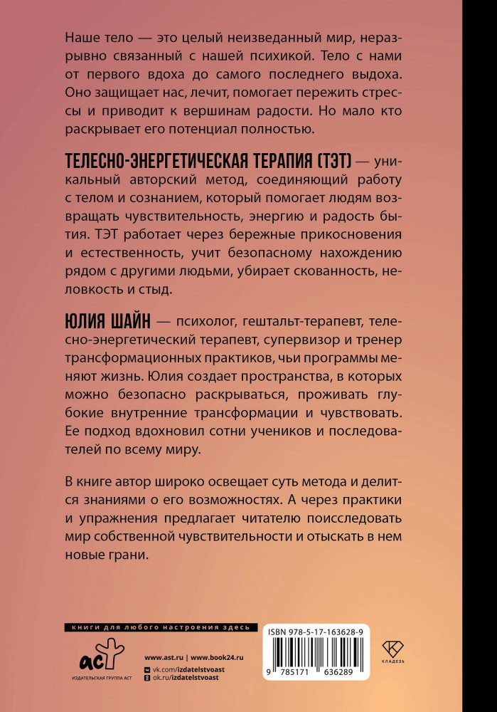 Серия: Ключ к тайнам Наше тело — это целый неизведанный мир, неразрывно связанный с нашей психикой. Тело с нами от первого вдоха до самого последнего выдоха. Оно защищает нас, лечит, помогает пережить стрессы и приводит к вершинам радости. Но мало кто раскрывает его потенциал полностью. |