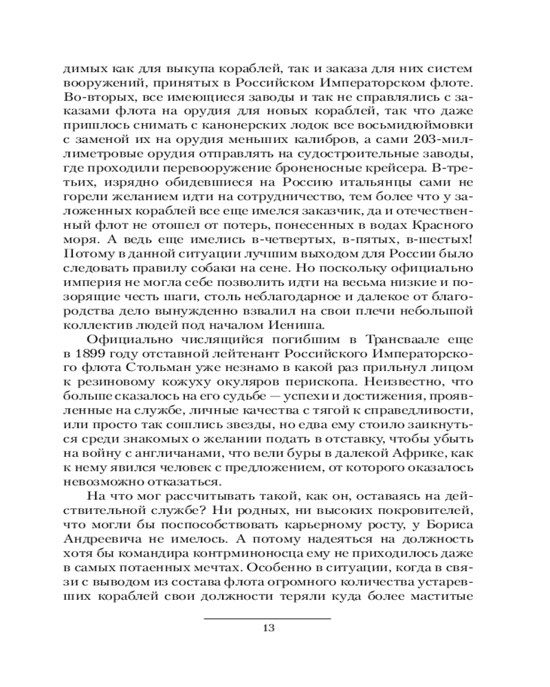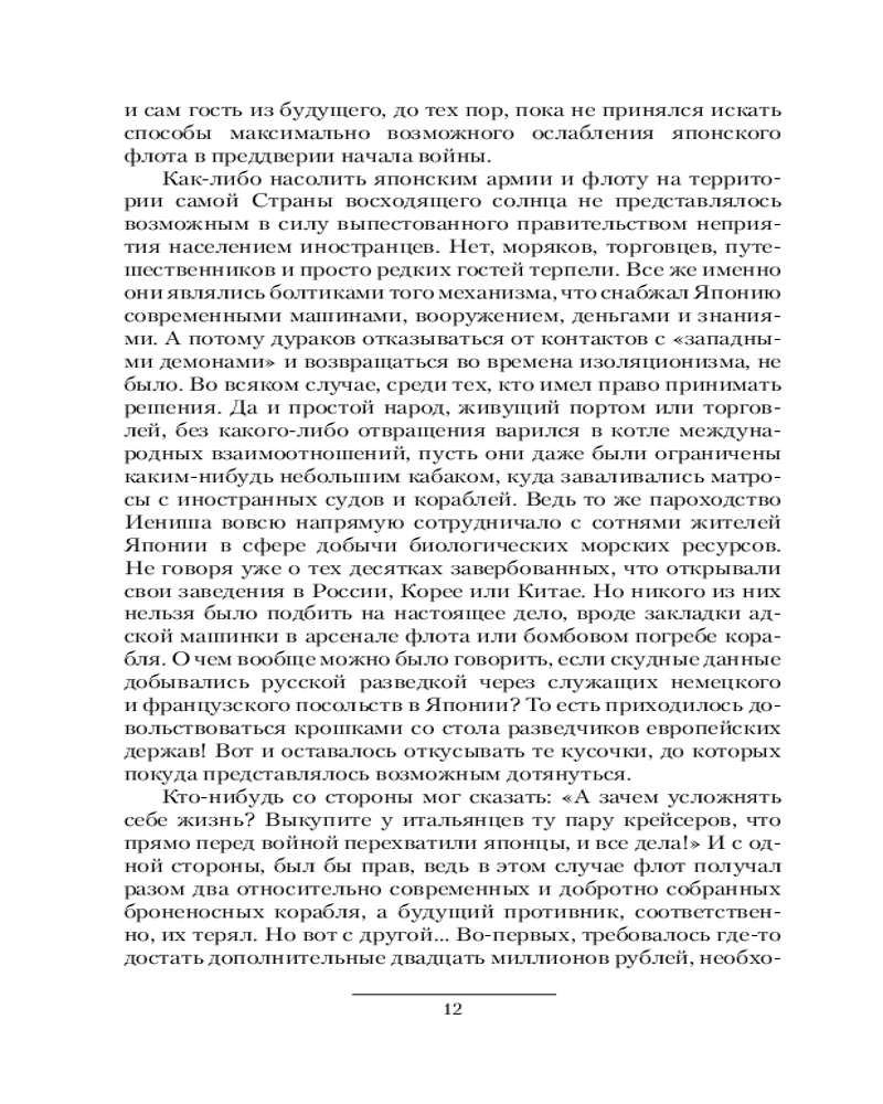 Серия: Коллекция. Военная фантастика Две войны, что русско-японская, что Первая мировая, являлись неизбежными для Российской империи. Слишком уж много интересов немалого числа власть имущих оказались направлены на максимально возможное ослабление России через вовлечение ее в данные противостояния. И никакие изменения, произошедшие из-за вмешательства пришельца из будущего, как внутри самой страны, так и за ее пределами, не могли уберечь ее от грядущих испытаний на прочность. Но ход истории уже несколько сменил вектор своего движения благодаря тем сдвигам, что стали итогом многолетнего труда патриотов своей страны. На сей раз у императора всероссийского имеется четкое понимание, для чего это надо ему самому и его народу. На сей раз Россия подготовилась не к «легкой прогулке», а к тяжкому противостоянию с равными противниками. Теперь же дело остается за малым — не только победить видимых врагов, но и обыграть якобы союзников на их же игровом поле. А флот... Что же, он постарается внести свою лепту в общее дело. Тем более что имеется, чем, кому и кого бить. |