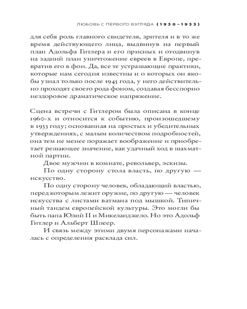 Серия: Corpus.(roman) 1969 год... Альберт Шпеер, любимый архитектор и министр вооружения в правительстве Гитлера, публикует свои мемуары. Вспоминая свое прошлое, от оформления партийных съездов НСДАП до падения рейха, он уверяет читателя, что полностью переосмыслил свои убеждения. Подобная «метаморфоза» позволила ему спасти свою жизнь по итогам Нюрнбергского процесса. Якобы ничего не зная о подробностях «окончательного решения еврейского вопроса», он готов «понести ответственность», но «не чувствует себя виноватым». Напрасно историки будут доказывать, что он лжет: образ страдальца надолго закрепится в массовом сознании. |