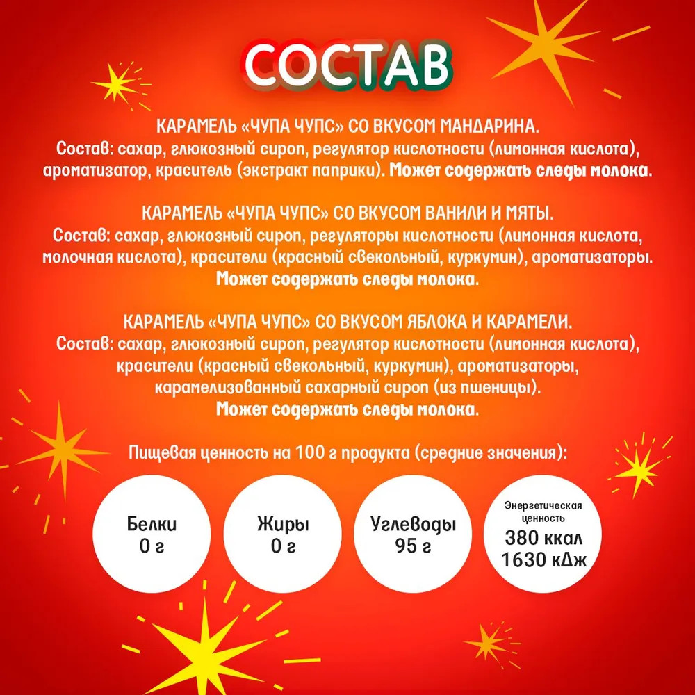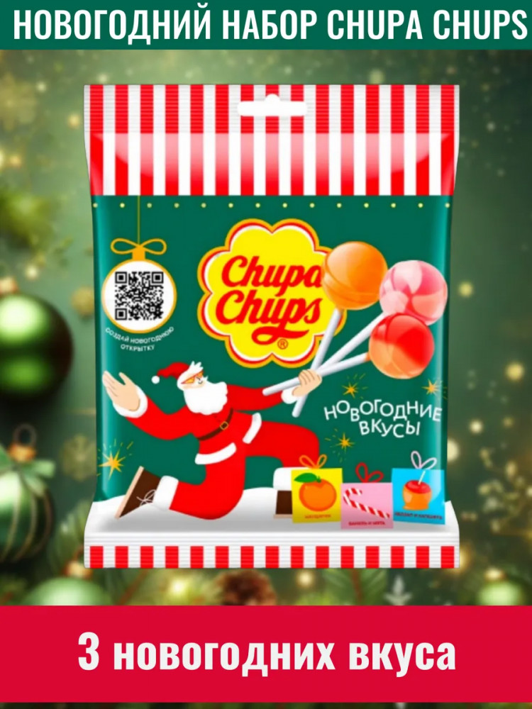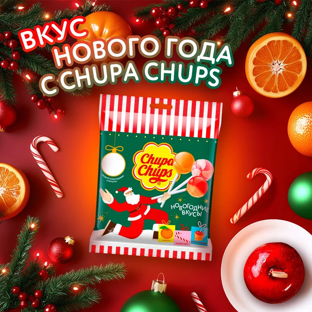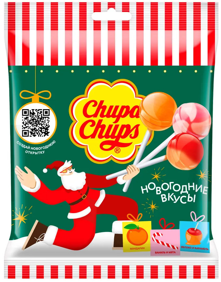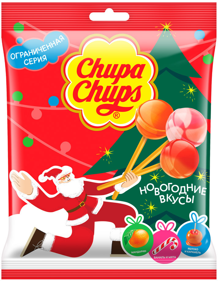 Серия: Новогодняя коллекция Карамель Chupa Chups «Новогодняя коллекция» — это удивительный подарок, который погружает в атмосферу праздника с первых мгновений. Каждый пакет весом 120 г наполнен 10 сладостями, которые радуют своей многообразной палитрой вкусов. |