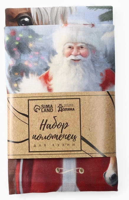 Доляна Набор полотенец кухонных «Лошадь и Дед Мороз»новинка -35%