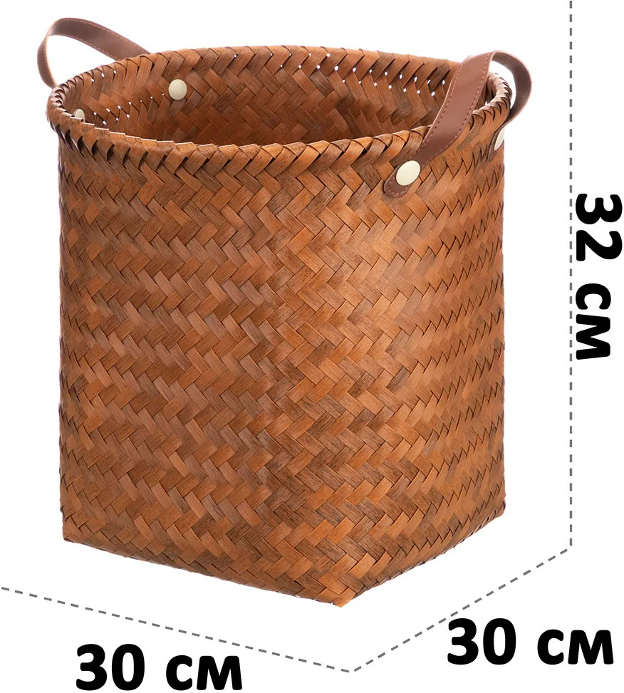 Плетёная корзина от El Casa предназначена для организации практичной системы хранения ваших вещей. Размер изделия — 30×30×32 см, размер дна — 24×24 см. Выполнена из полиротанга, сочетающего в себе прочность и лёгкость. Он не деформируется даже при хранении тяжёлых предметов, сохраняя форму и структуру корзины при повседневном использовании. Изделие оснащено уплотнённым ободком и прочными ручками-ремешками из полиуретана. Красивый лаконичный дизайн позволит органайзеру найти место в любой части вашей квартиры. В прихожей он поможет хранить шарфы, зонты, шапки и перчатки. В спальне компактно сложите в него тапочки, постельное бельё или небольшие подушки. Расположите его в детской комнате под одежду, игрушки или книги, в кухне — под кухонные полотенца или баночки со специями и приправами. Приспособьте под художественные принадлежности и приборы для рукоделия: альбомы, кисточки, нитки или пряжу. Послужит в качестве офисного инвентаря, позволяя держать под рукой папки или документы. Благодаря надёжным ручкам даже наполненный контейнер легко переносить. Большая корзинка создаст уют в любом помещении. Не рекомендуется применять абразивные моющие средства. В коллекции бренда El Casa представлены разнообразные товары для дома, которые привнесут в ваш быт практичности и стиля.