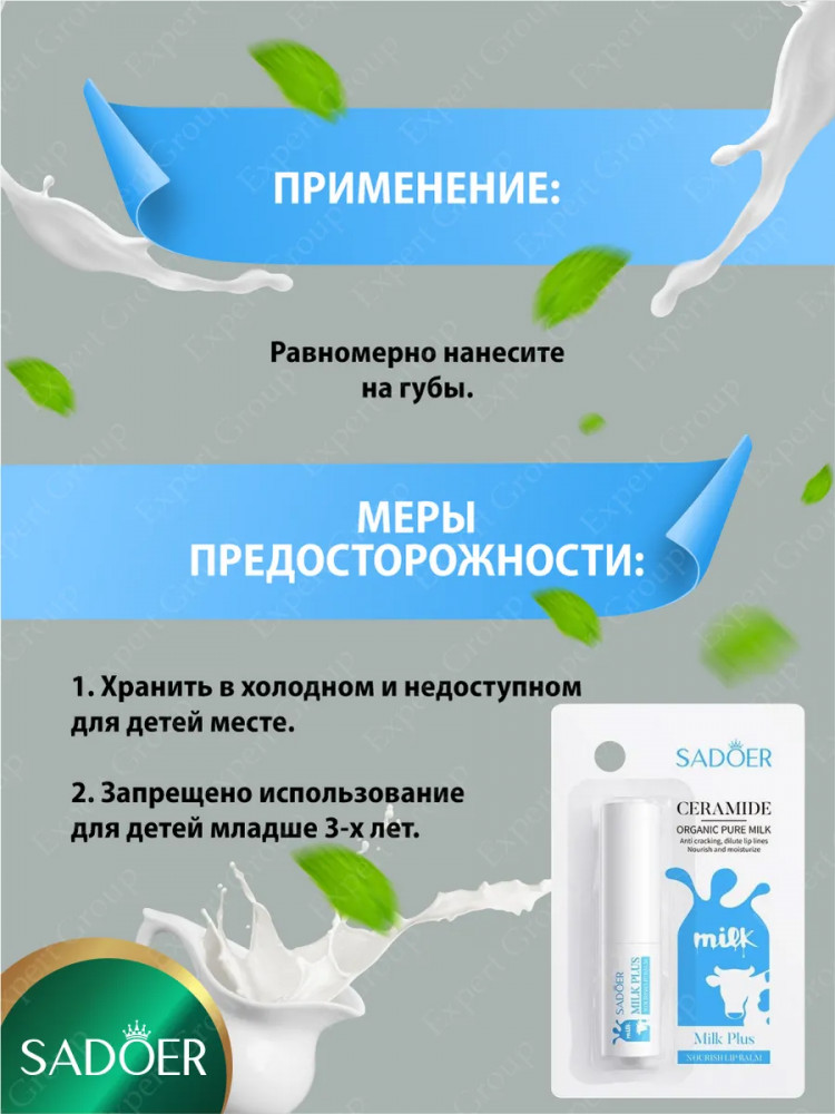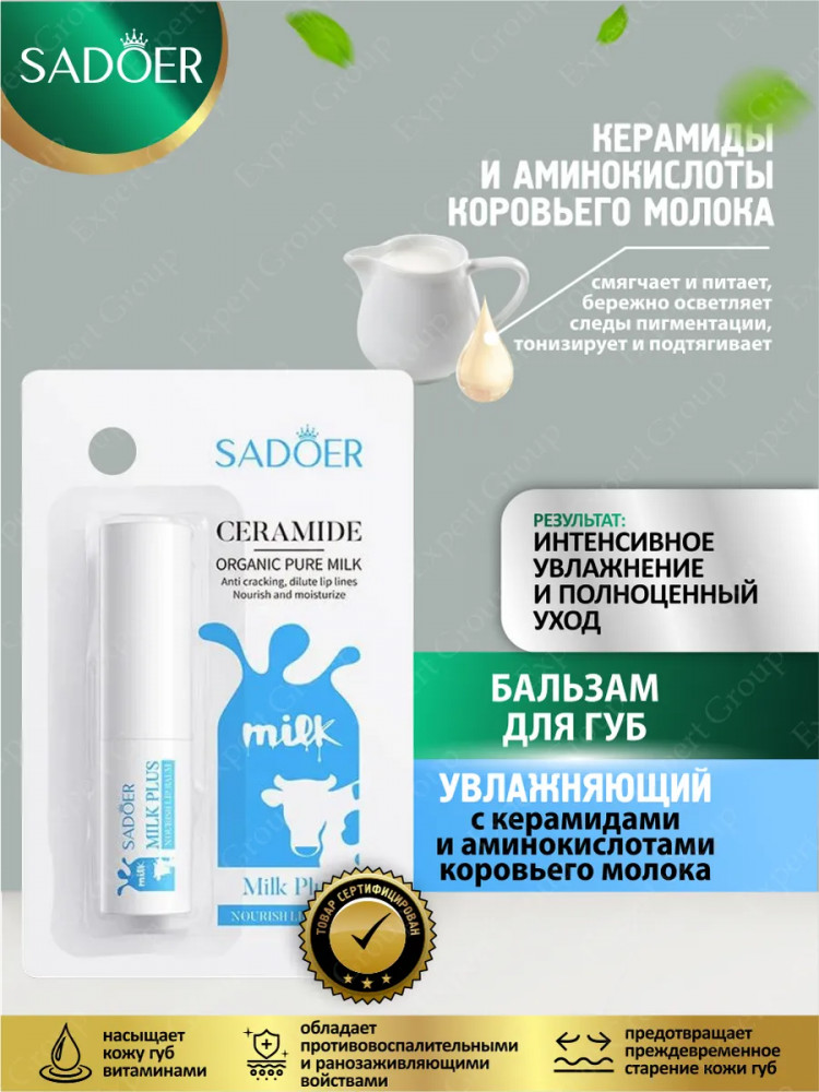 SADOER Увлажняющий бальзам для губ с керамидами и аминокислотами коровьего молока «Ceramide Milk Plus»