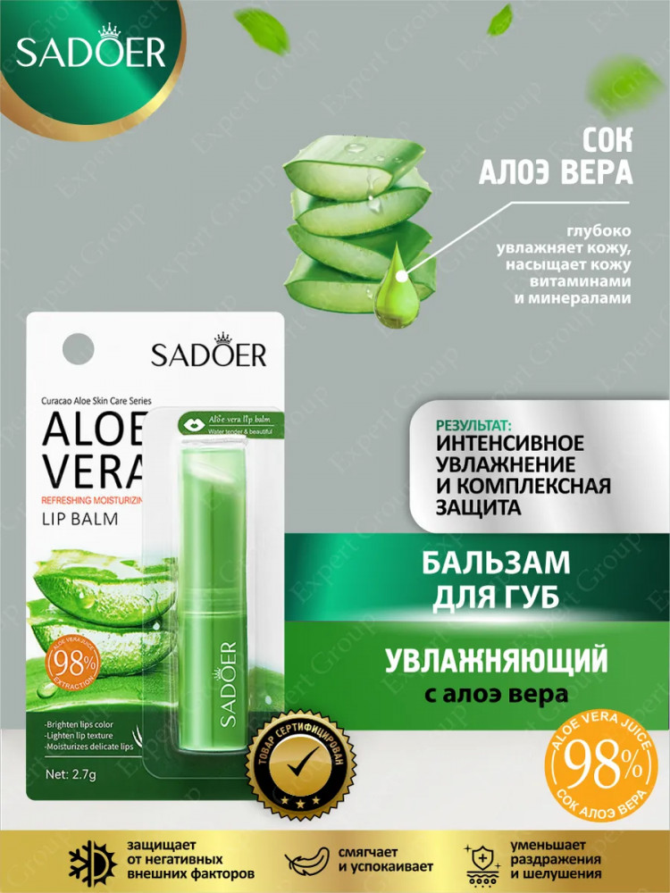 SADOER Увлажняющий бальзам для губ с экстрактом алоэ вера