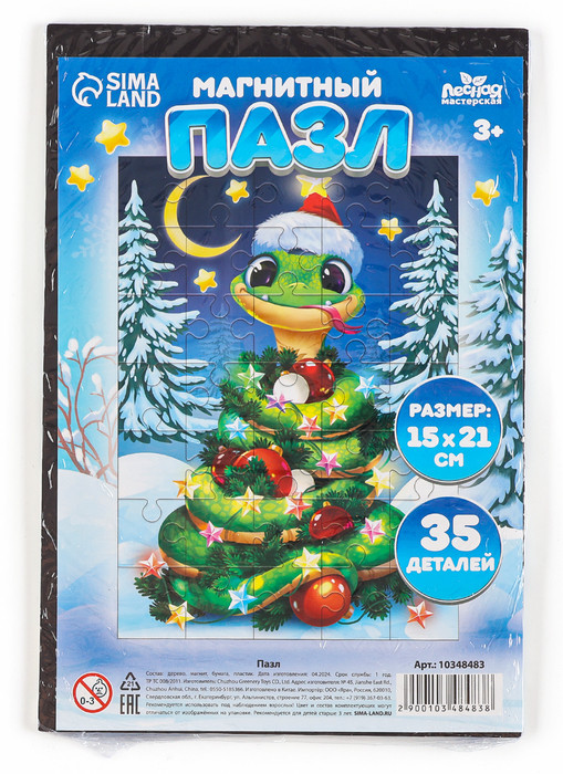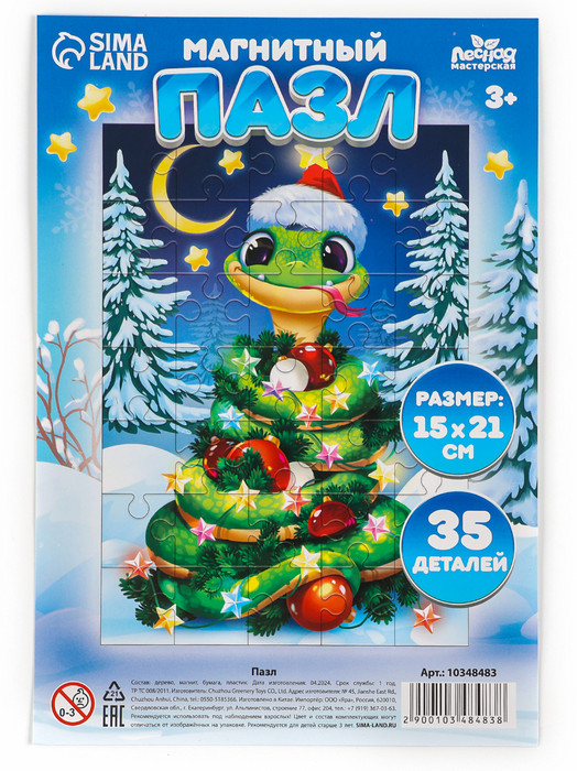 Лесная мастерская Пазл для детей магнитный деревянный «Новый год! Змея»новинка -25%