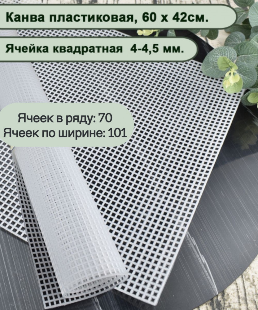 Белая пластиковая канва с ячейками 4–5 мм идеально подходит для вышивки и творчества. Прочный материал не рвется, не осыпается и не требует пялец. Используется для создания панно, чехлов, сумок, органайзеров, брелков и декоративных изделий. Подходит для работы с мулине, шерстяными нитями и лентами. Легко режется и держит форму без дополнительного укрепления. |