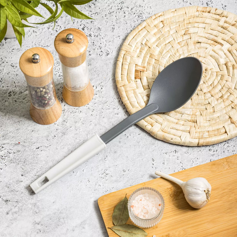 Ложка подходит для разливания супа, соуса, бульона, варенья — любых жидкостей, когда продукт требуется в небольших количествах. Также можно использовать для сервировки блюд. Рабочая часть ложки изготовлена из 100% пищевого нейлона и выдерживает температуру до 200°C. Ручка имеет оригинальную эргономичную форму и приятную шероховатую поверхность. Идеально подходит для посуды с антипригарным покрытием.