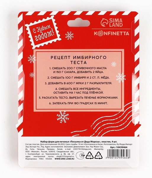 Sima-Land Home Набор форм для выпечки «Посылка от Деда Мороза»новинка В данный момент этот товар отсутствует в продаже. Возможно, у нас найдется аналогичный или похожий товар здесь. Набор форм — незаменимый помощник для тех, кто любит творить на кухне с вдохновением. Фигурки позволяют легко создавать оригинальные и аккуратные сладости для любого случая — от семейных чаепитий до праздничных угощений. Формы удобно использовать, они не деформируют тесто и обеспечивают чёткие контуры. С их помощью вы сможете порадовать близких вкусным домашним печеньем необычной формы и превратить процесс выпечки в настоящее удовольствие. |