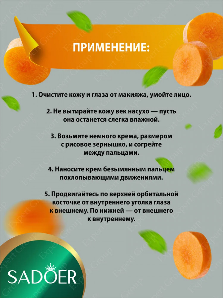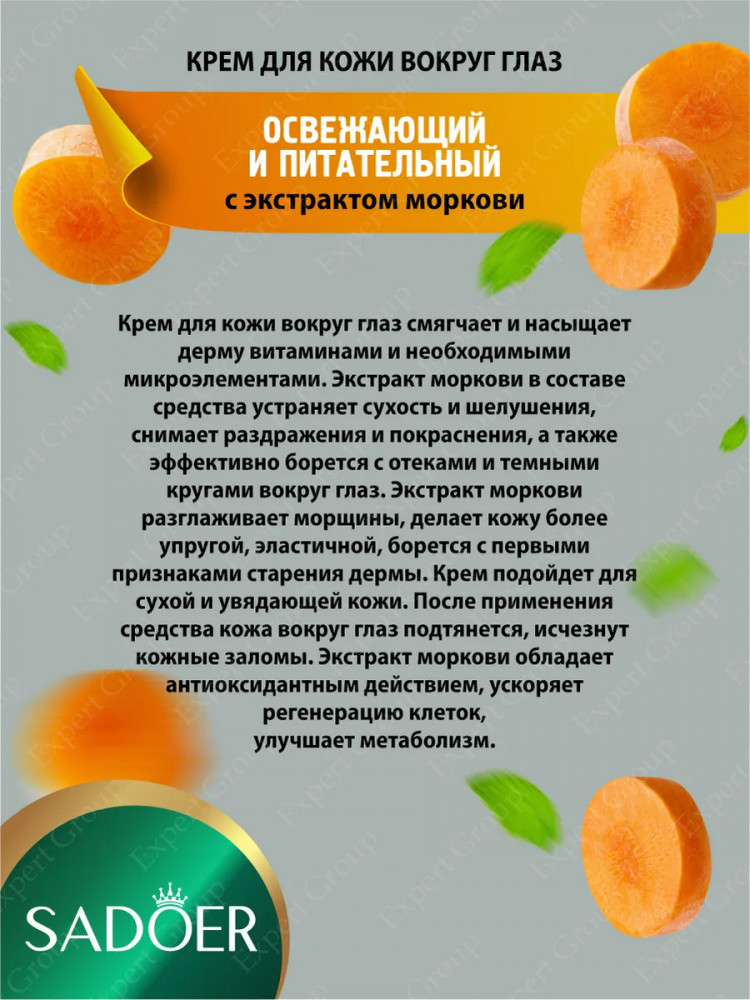 SADOER Увлажняющий питательный крем для кожи вокруг глаз с экстрактом моркови и бета-каротином