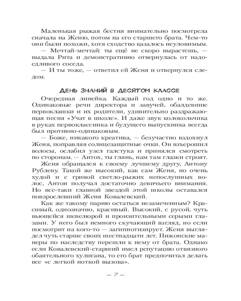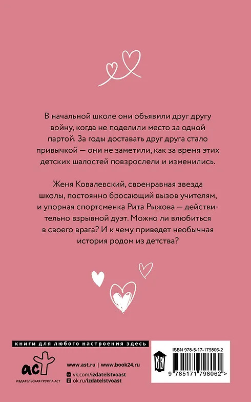 В начальной школе они объявили друг другу войну, когда не поделили место за одной партой. За годы доставать друг друга стало привычкой — они не заметили, как за время этих детских шалостей повзрослели и изменились. Женя Ковалевский, своенравная звезда школы, постоянно бросающий вызов учителям, и упорная спортсменка Рита Рыжова — действительно взрывной дуэт. Можно ли влюбиться в своего врага? И к чему приведёт необычная история родом из детства?