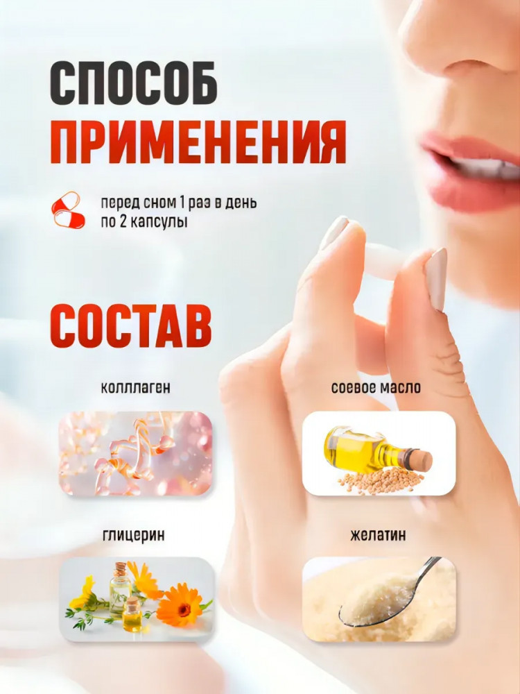 Коллаген поддерживает в здоровом состоянии кожу, волосы и ногти, увеличивает гибкость и упругость соединительных тканей. Использование жидкого коллагена помогает добиться результатов в течение нескольких недель. Если вы хотите убрать "растяжки" в домашних условиях - коллаген будет очень полезен. Использование коллагена в виде добавки способно значительно сократить болевые ощущения в области суставов и связок и улучшить их функционирование, этот продукт рекомендуется к приему всем и особенно, если Вы занимаетесь тяжелыми видами спорта, такими как бодибилдинг, пауэрлифтинг, тяжелая атлетика и т. п.