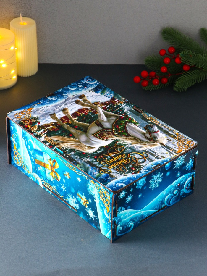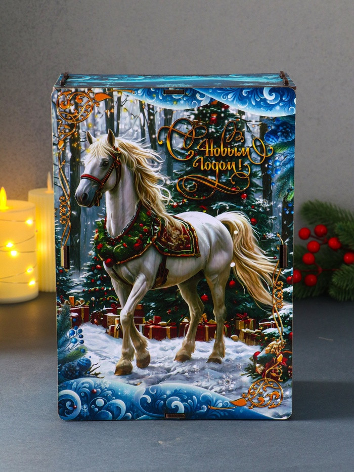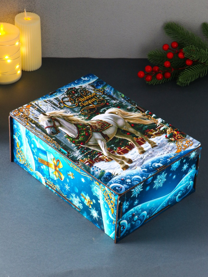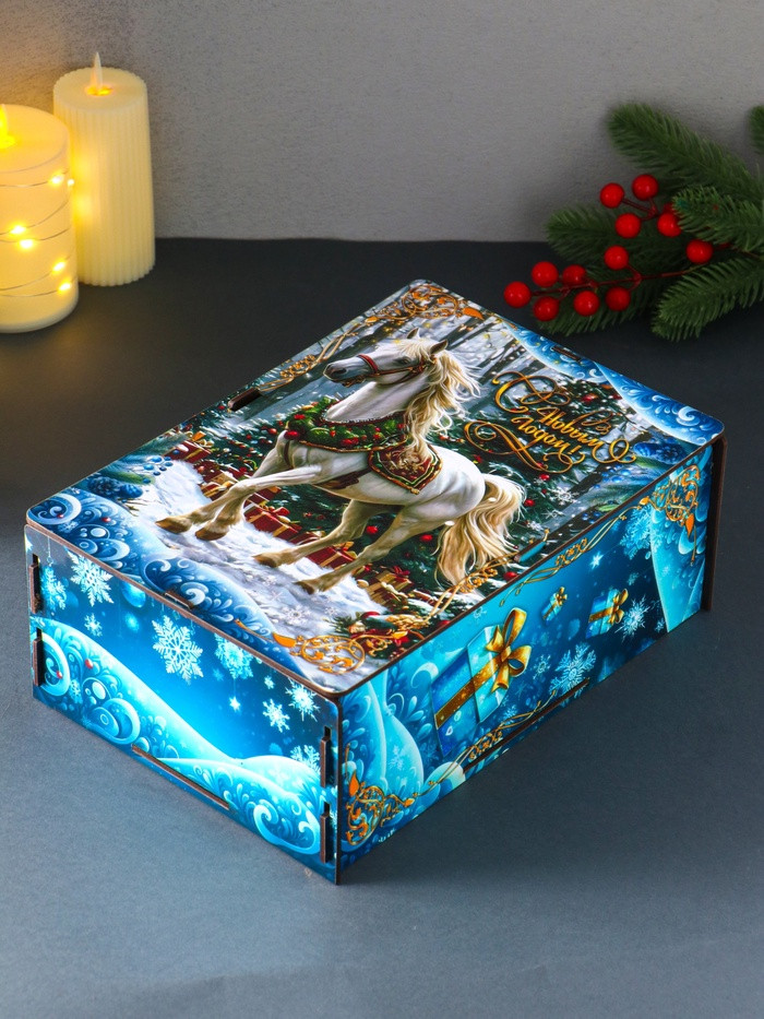Шкатулка подарочная «Белая лошадь на голубом»новинка -25%