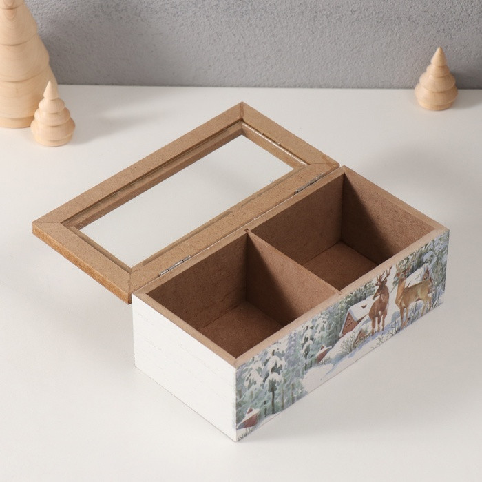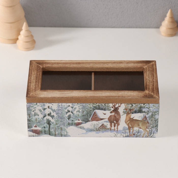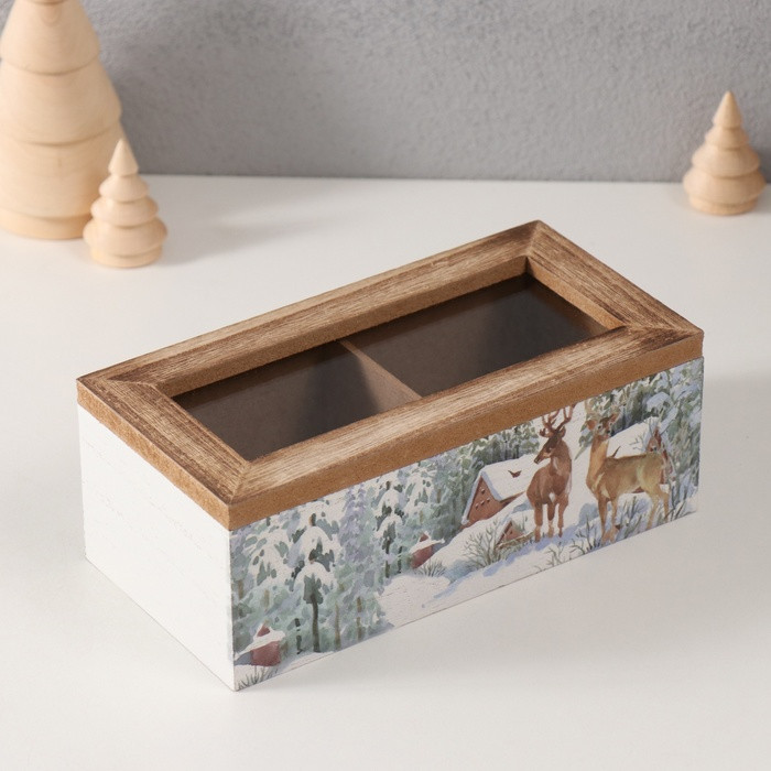 Шкатулка для чая «Олени у заснеженного домика»новинка -25%