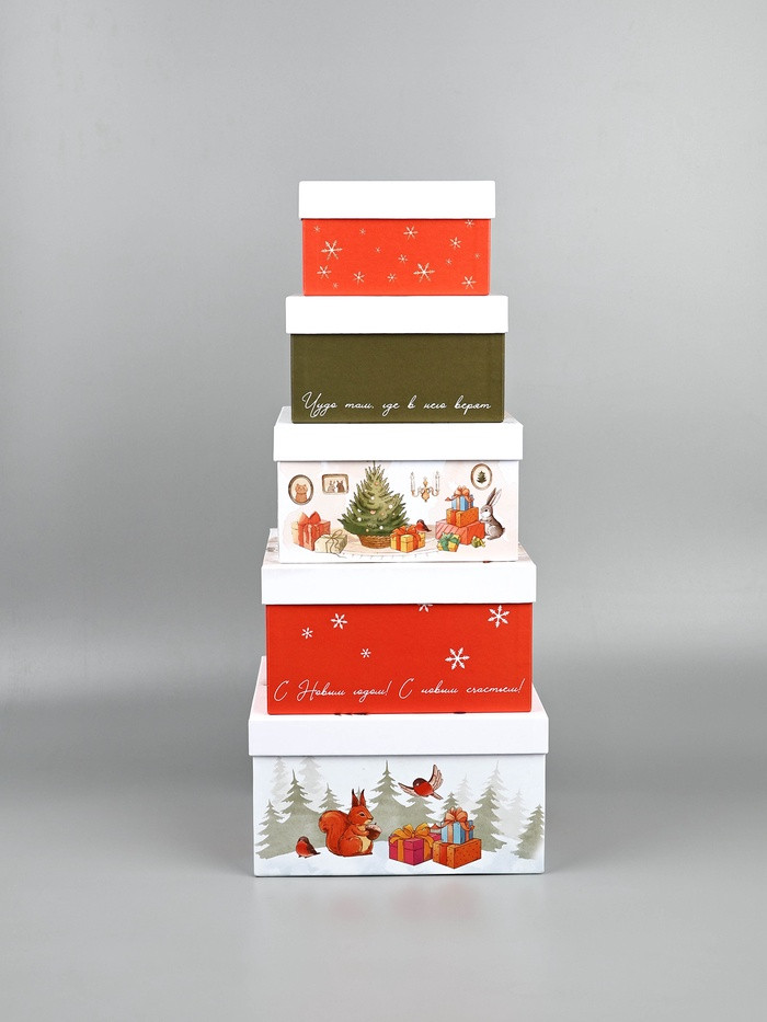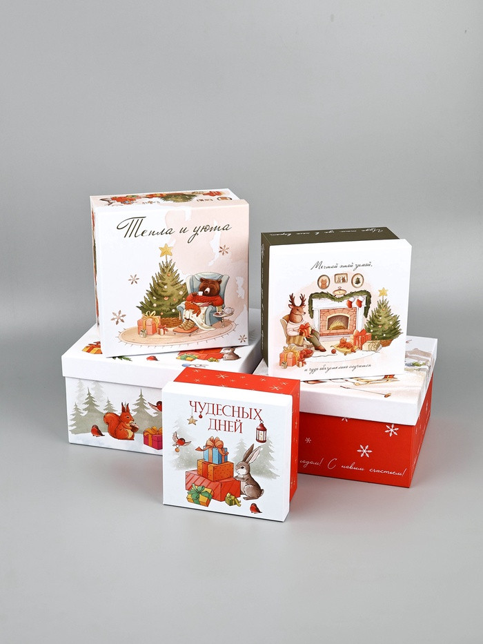 Дарите Счастье Набор подарочных коробок 5 в 1 «Уютный Новый год»новинка -25%