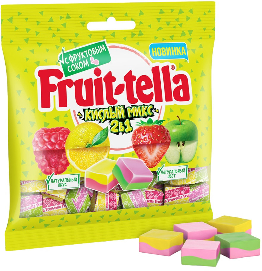 Fruittella Конфеты жевательные со вкусами яблока и клубники, лимона и малины «Кислый микс 2 в 1»
