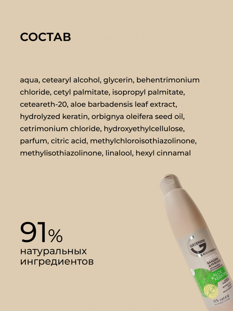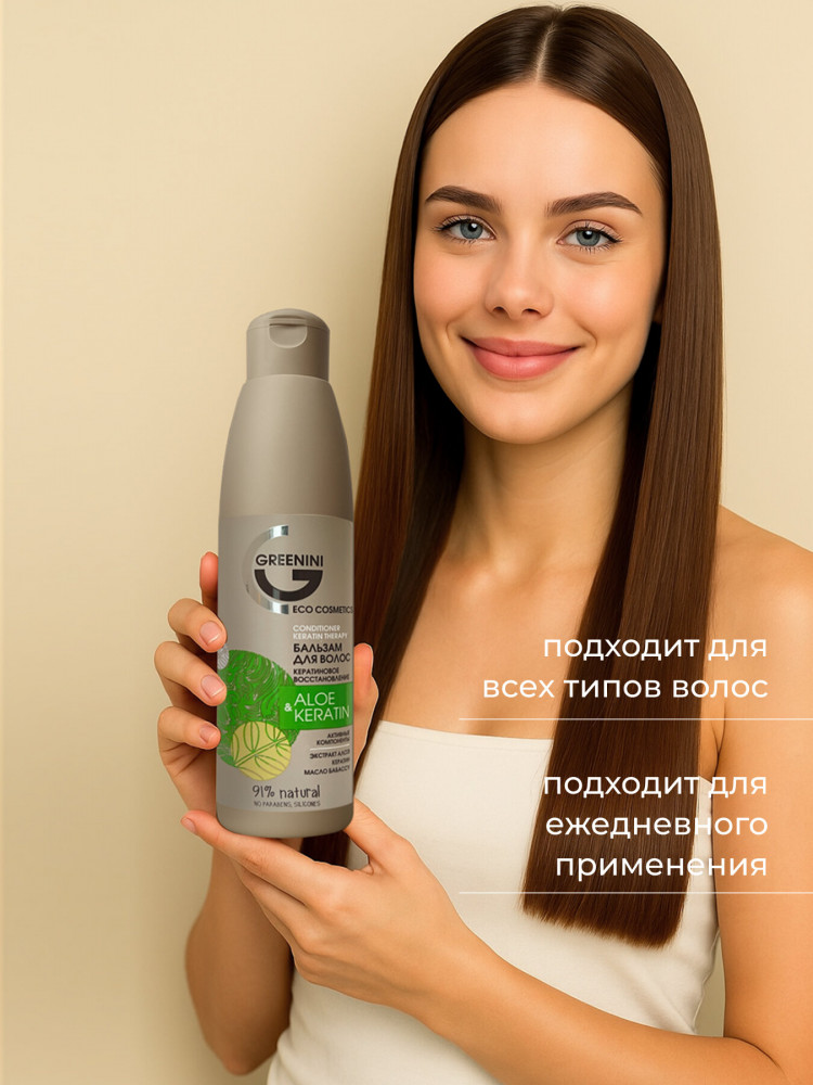 Greenini Шампунь для волос «Aloe & Keratin. Кератиновое восстановление»