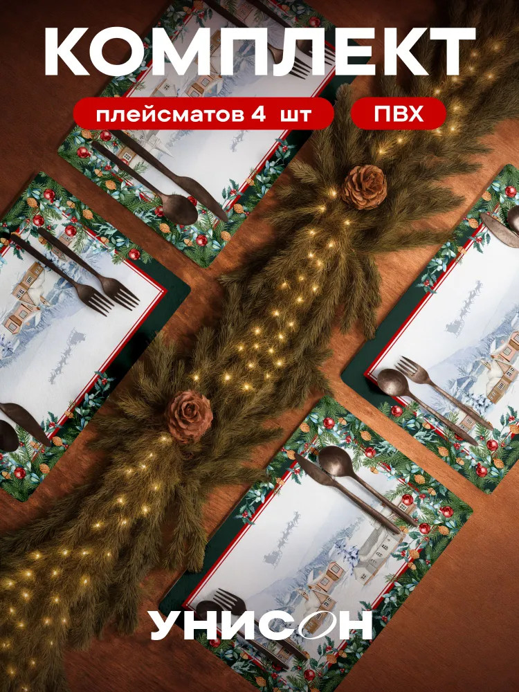 Унисон Набор салфеток сервировочных «Christmas village»новинка -40%