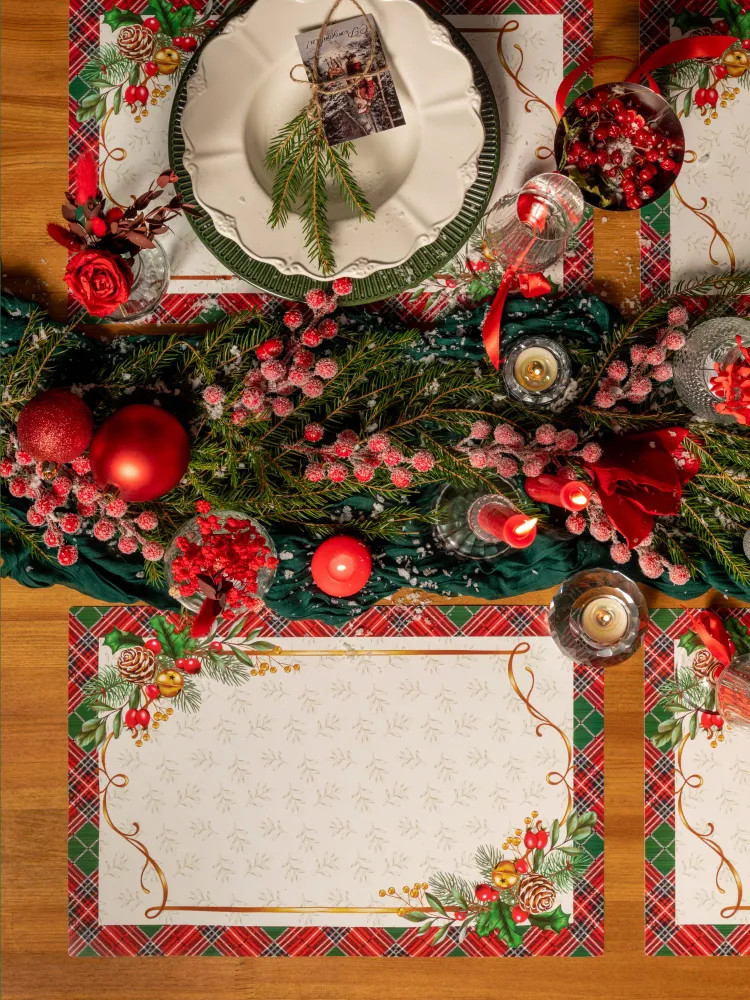 Серия: Cell garland Стильные плейсматы разнообразят сервировку новогоднего стола и помогут создать в доме праздничное настроение! Термостойкие салфетки, которые также не впитывают запахи и отлично держат форму, можно использовать как подставки под столовые приборы и посуду, в том числе горячую. Настольные салфетки защищают твердую поверхность от царапин, крошек, влаги и глубоких пятен.   |