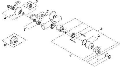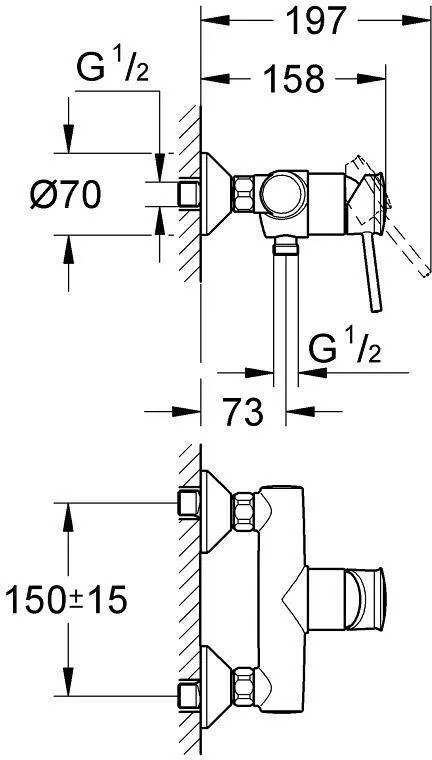 Серия: BauClassic Смеситель с настенным монтажом, имеет: металлический рычаг, Grohe Long-Life Керамический картридж 46 мм, Grohe Long-Life Finish — стойкое долговечное покрытие, регулировка расхода воды, возможность установки мин. расхода 2,5 л/мин., отвод для душа снизу 1/2".  |