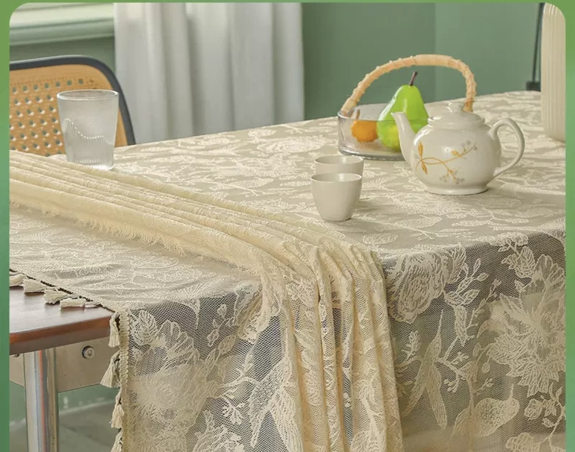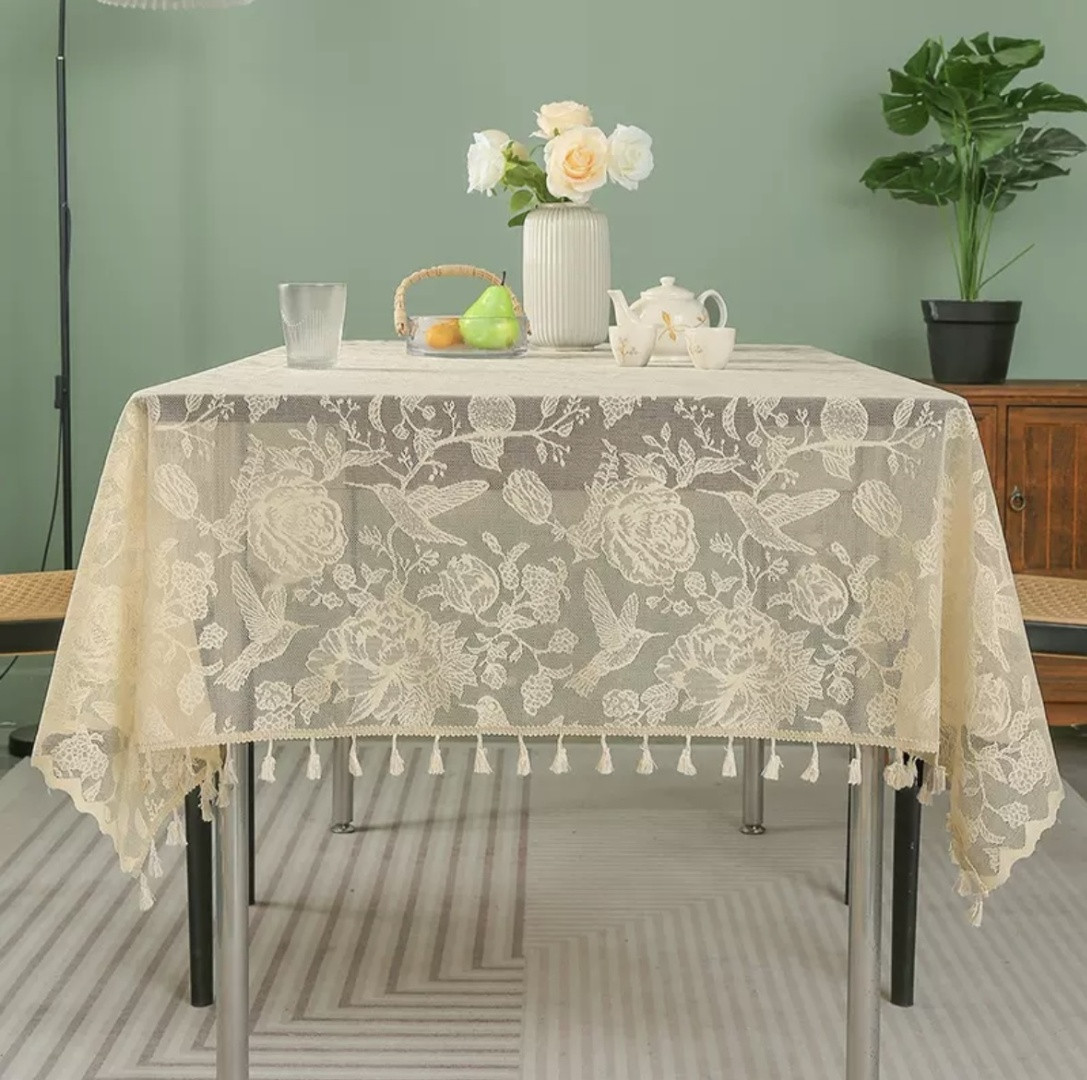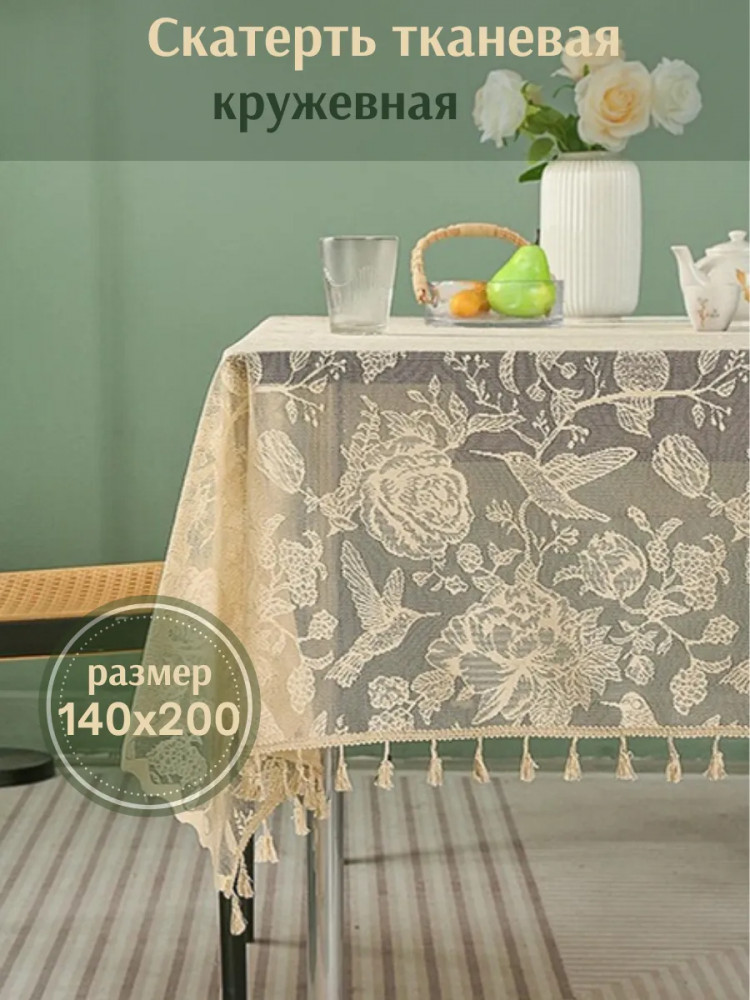 купила как вторую скатерть поверх однотонной, очень довольна. описанию соответствует.