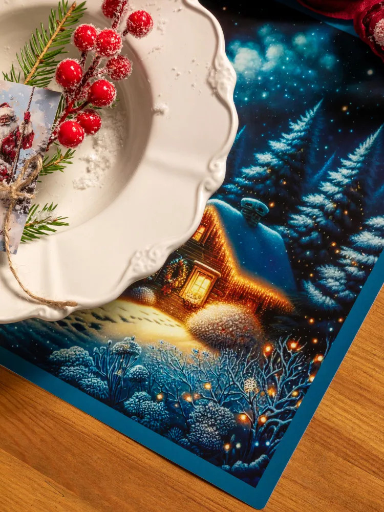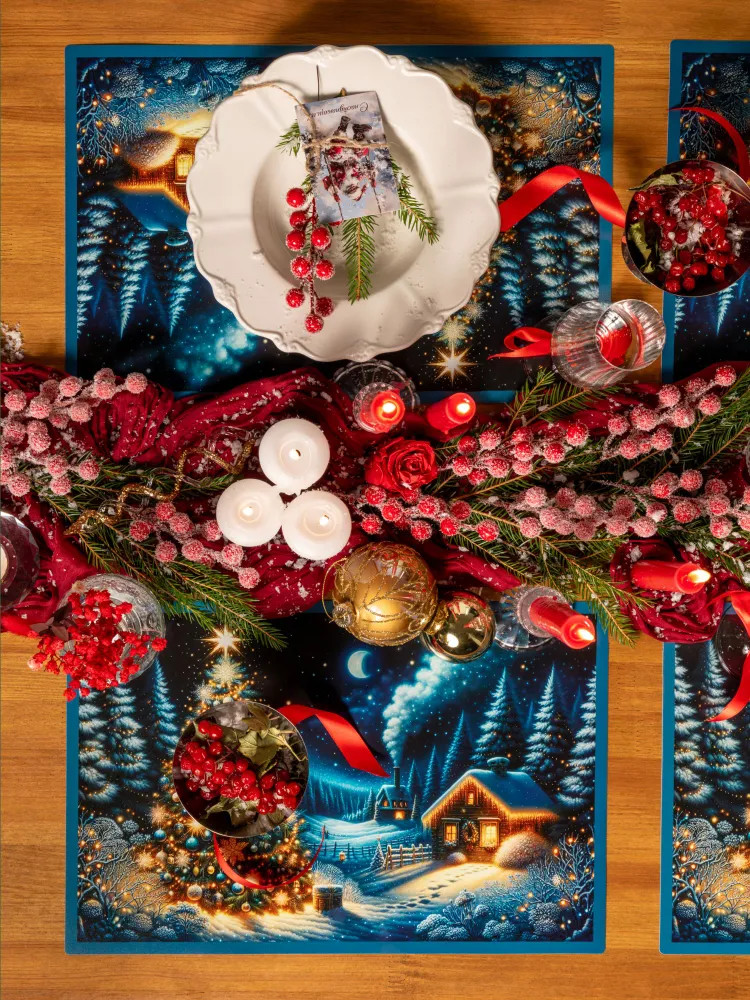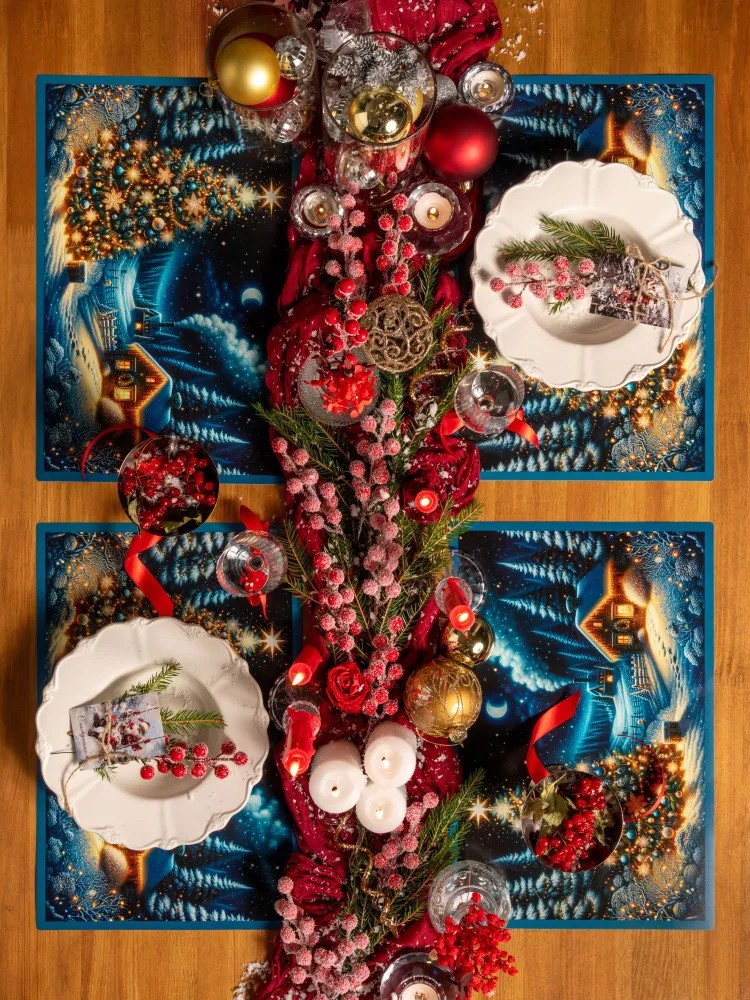 Стильные плейсматы разнообразят сервировку новогоднего стола и помогут создать в доме праздничное настроение! Термостойкие салфетки, которые также не впитывают запахи и отлично держат форму, можно использовать как подставки под столовые приборы и посуду, в том числе горячую. Настольные салфетки защищают твердую поверхность от царапин, крошек, влаги и глубоких пятен. |