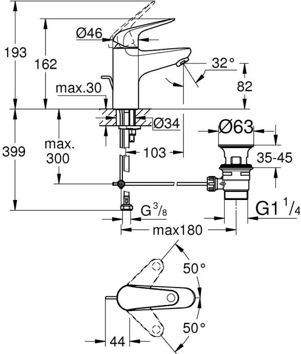 Grohe Смеситель для раковины с донным клапаномновинка -20%