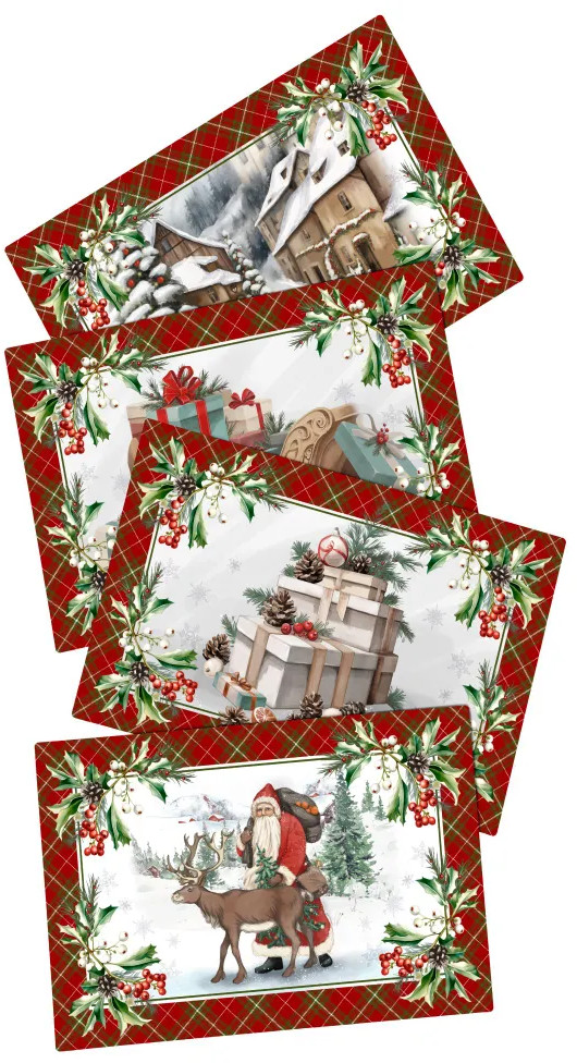 Стильные плейсматы разнообразят сервировку новогоднего стола и помогут создать в доме праздничное настроение! Термостойкие салфетки, которые также не впитывают запахи и отлично держат форму, можно использовать как подставки под столовые приборы и посуду, в том числе горячую. Настольные салфетки защищают твердую поверхность от царапин, крошек, влаги и глубоких пятен. Красивые и полезные рождественские плейсматы из пластика — отличная покупка для дома или дачи. Они помогут оживить интерьер в праздник или во время повседневной трапезы. |