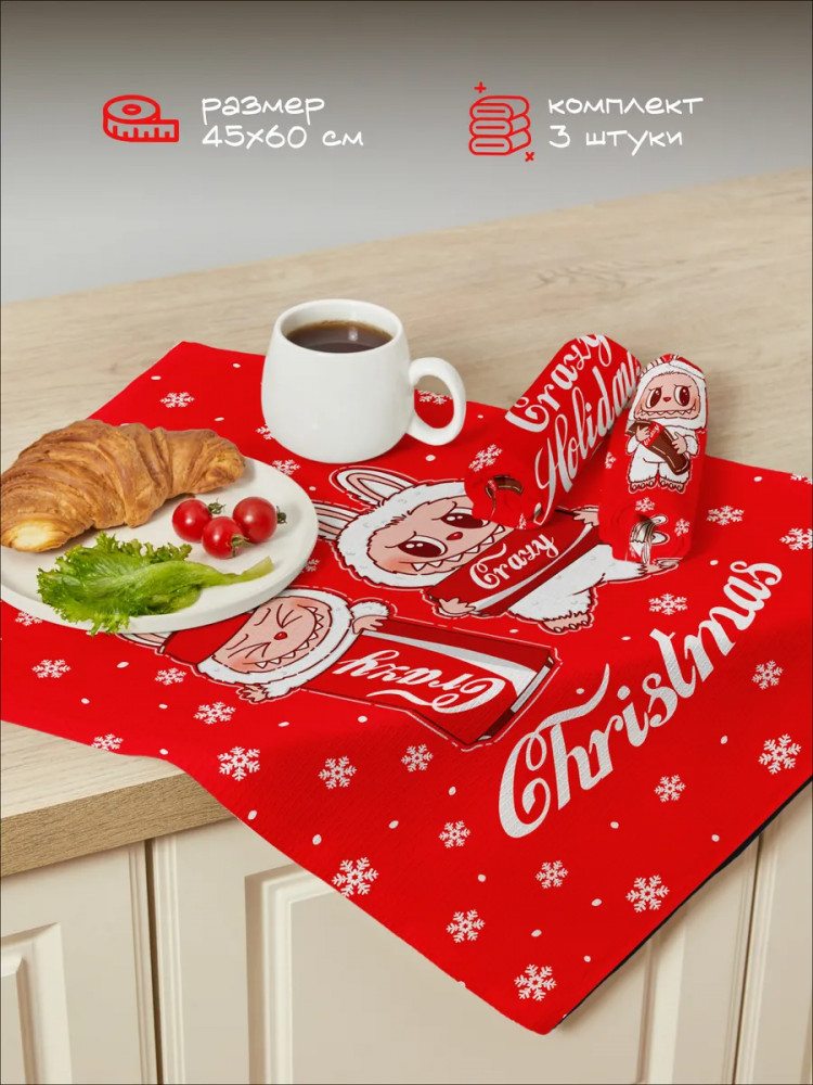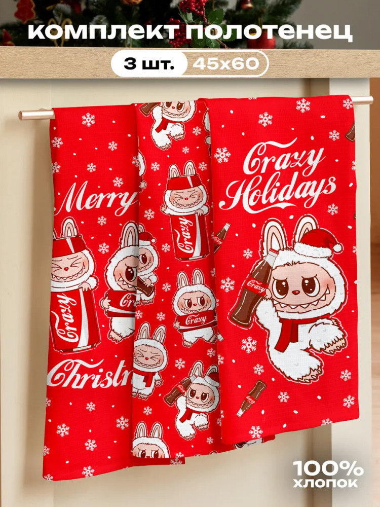 Crazy Getup Комплект полотенец кухонных «Winter Labubu»новинка -35%