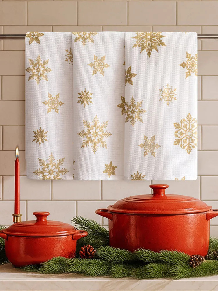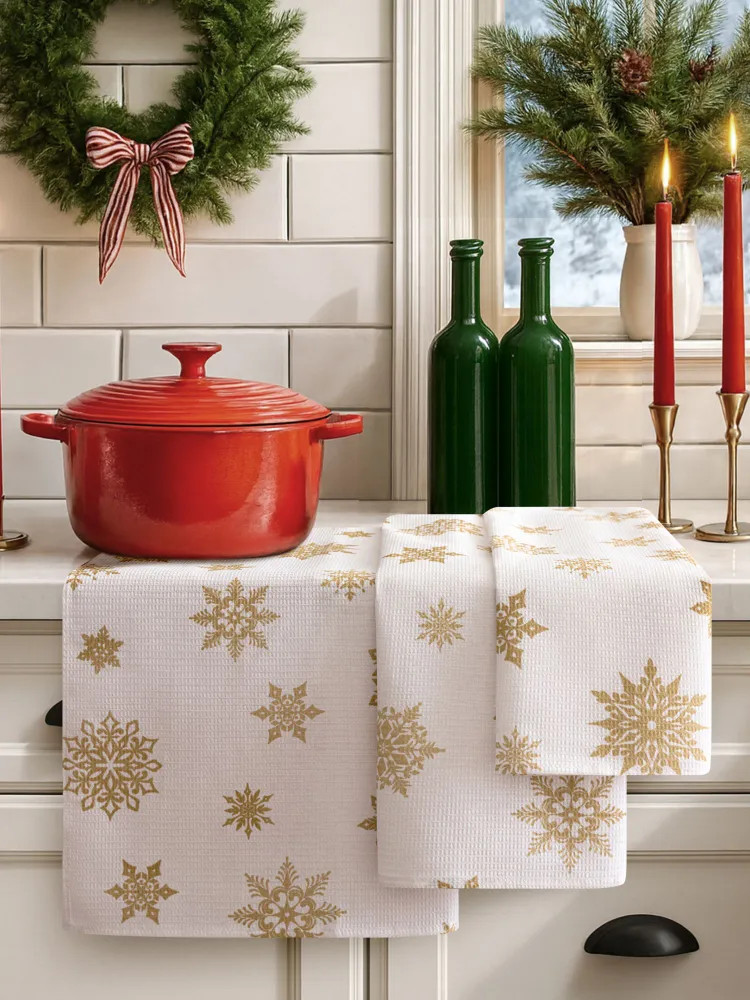 Серия: White snowflakes Набор вафельных полотенец — незаменимый новогодний подарок для настоящей хозяйки. Красивые и стильные полотенчики с тематическим принтом создадут дома уют. Такие вафельные полотенца — универсальный предмет текстиля для столовой вне зависимости от того, в каком стиле оформлен её интерьер! Мягкие кухонные полотенца из устойчивой к износу ткани (100% хлопок) будут полезны во время готовки и других хозяйственных дел. Прочные тканевые полотенца плотностью 150 г/м2 хорошо впитывают влагу и быстро высыхают. Их также отличает способность долго сохранять цвет и рисунок. Прямоугольные вафельные полотенчики, которые не оставляют следов ворса — универсальный домашний текстиль. Быстросохнущими полотенцами удобно вытереть руки, их можно положить под посуду у раковины или использовать, чтобы смахнуть крошки со стола. |
