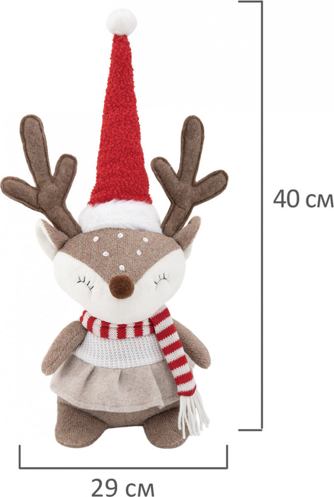 Ищете идеальный подарок для родных или друзей? «Веселый оленёнок» станет символом тепла и заботы, который будет радовать глаз не только в новогодние праздники, но и в течение всего года. Ведь это не просто украшение. Это эмоции, которые оно приносит. Оленёнок упакован в пакет с клейким краем и в гофрокороб. Материал — полиэстер, дерево. Размер — 40 см.