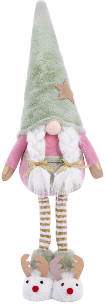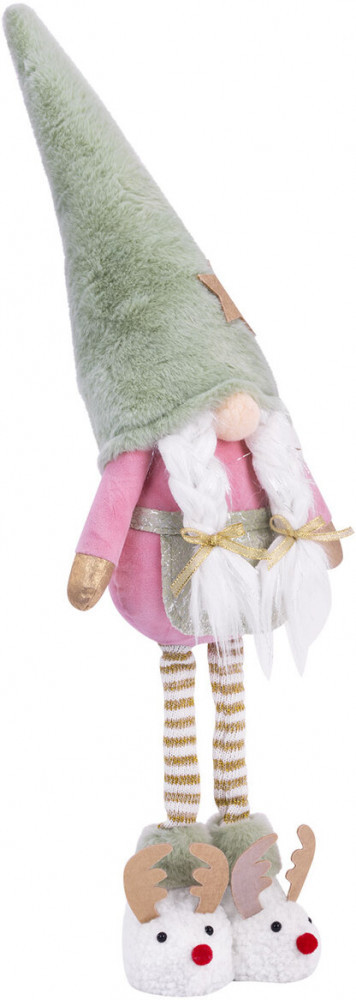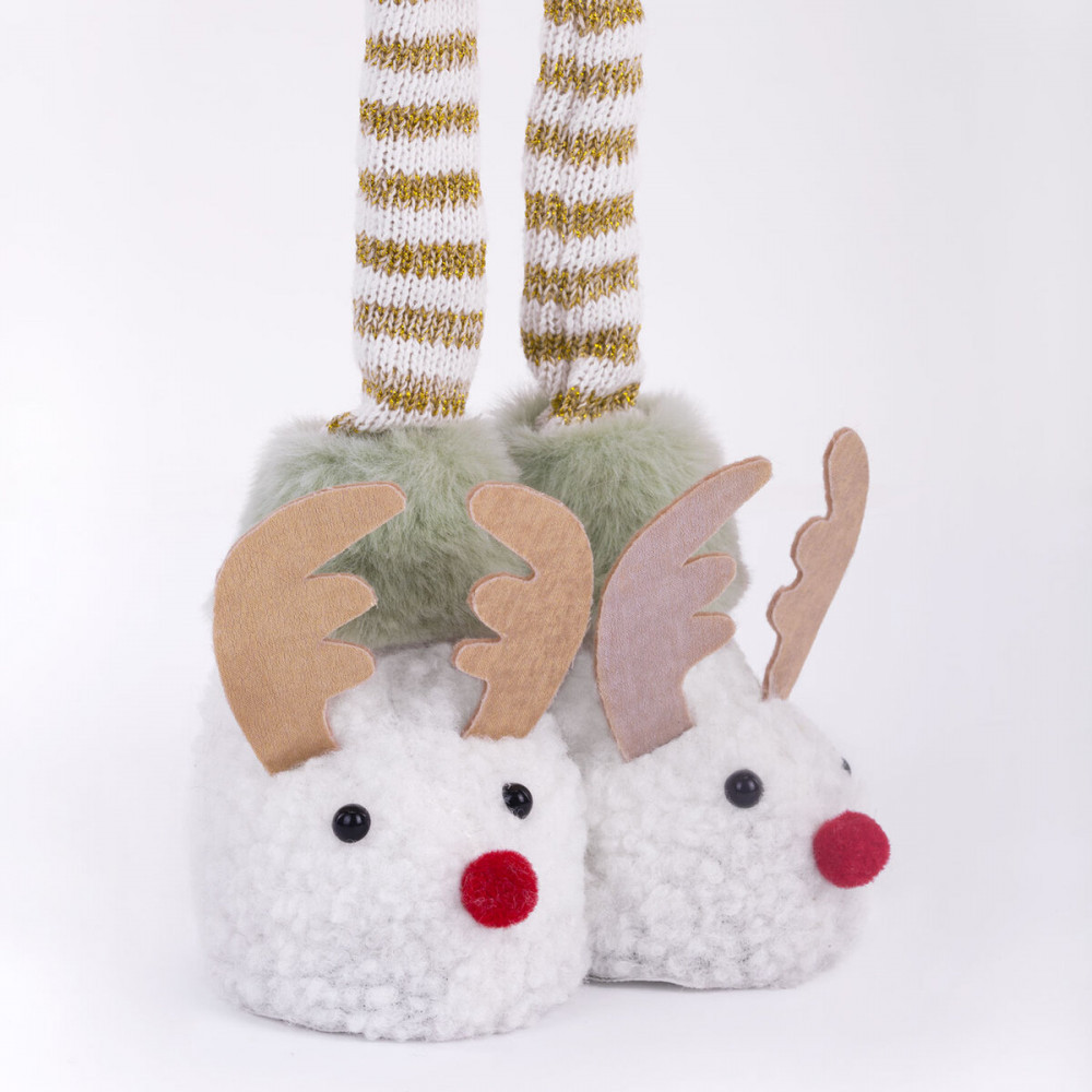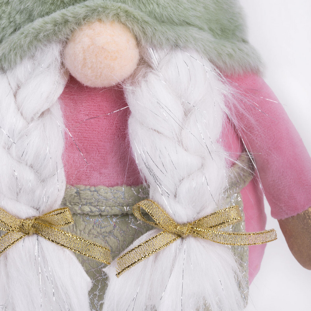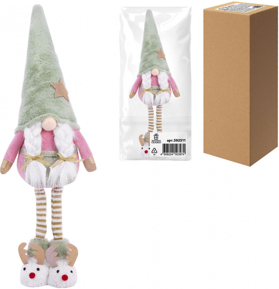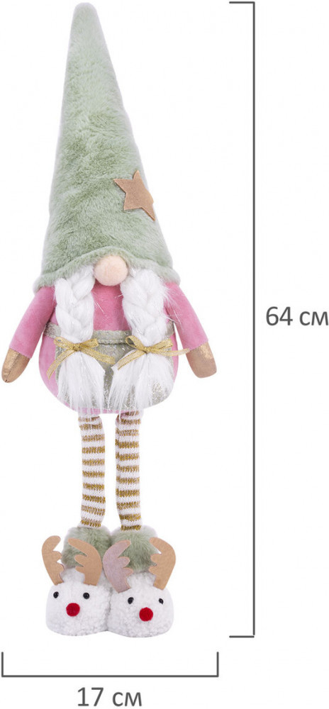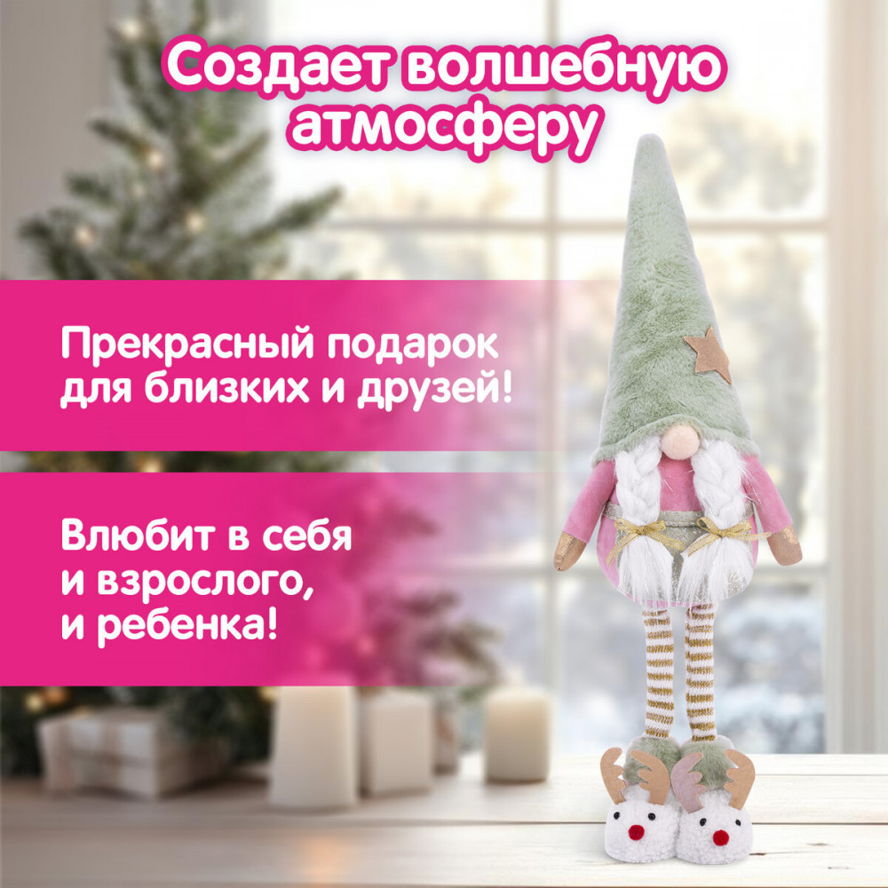 Новый год — это время чудес и радости! Новогоднее интерьерное украшение «Гном в тапочках» идеально впишется в Ваш праздничный декор, создавая уют и атмосферу волшебства, которая согреет сердца Ваших близких. Гном в тапочках — это уникальный персонаж, который станет ярким акцентом Вашего интерьера и будет дарить Вам радость каждый день! Этот очаровашка с двумя косичками и длинными ножками, на которых красуются забавные тапочки-олени, обязательно вызовет улыбку у всех членов Вашей семьи.